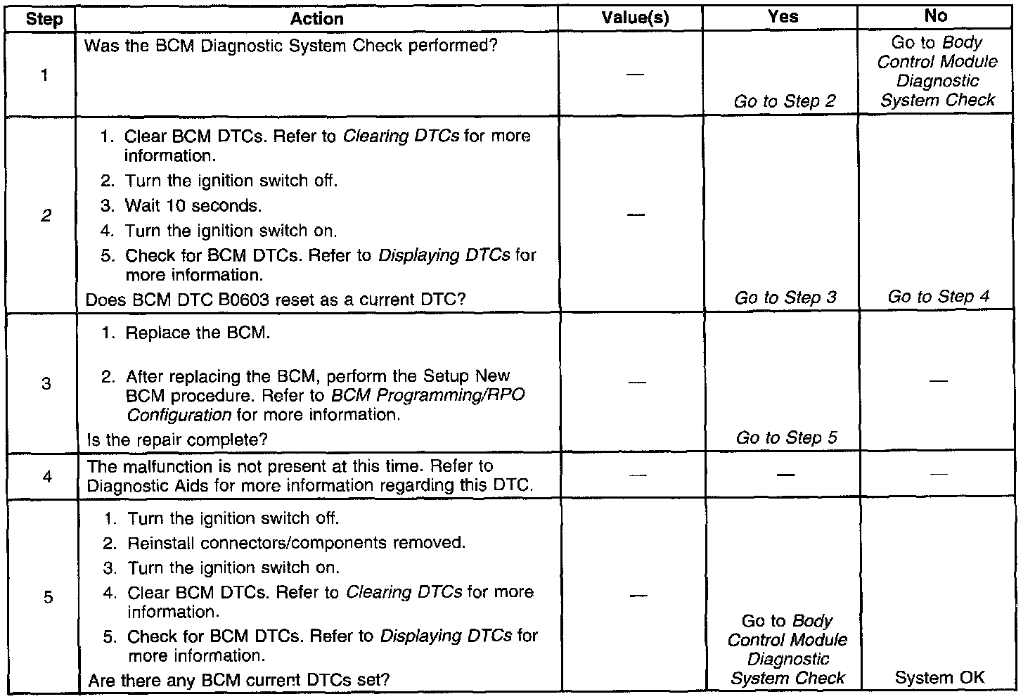 DTC B0603 BCM Internal Memory Malfunction: