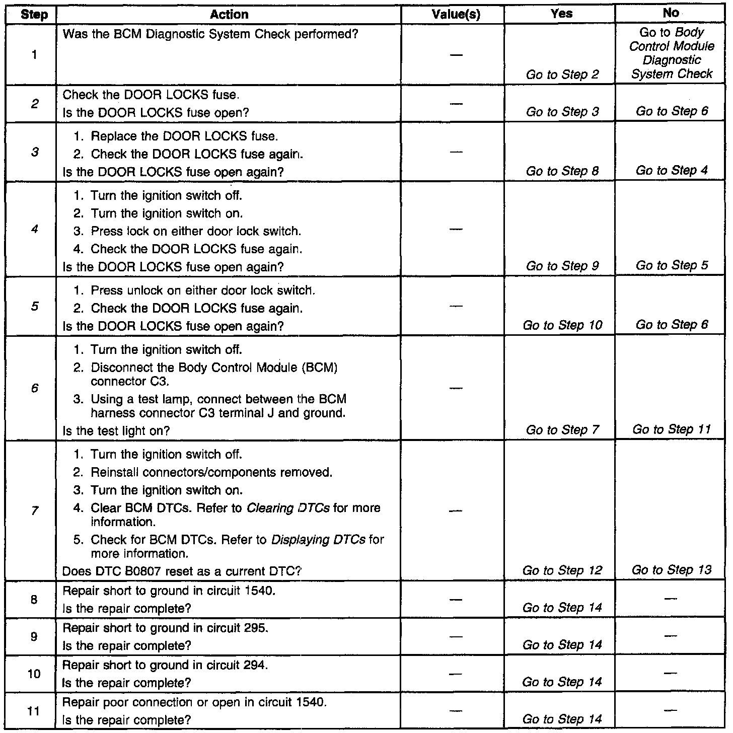 DTC B0807 Door Lock Battery Feed Circuit Open (Part 2 Of 2):