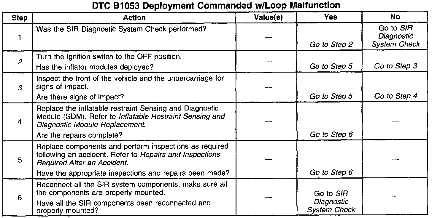 2. If the inflator module(s) has not deployed, DTC B1053 may have set falsely.