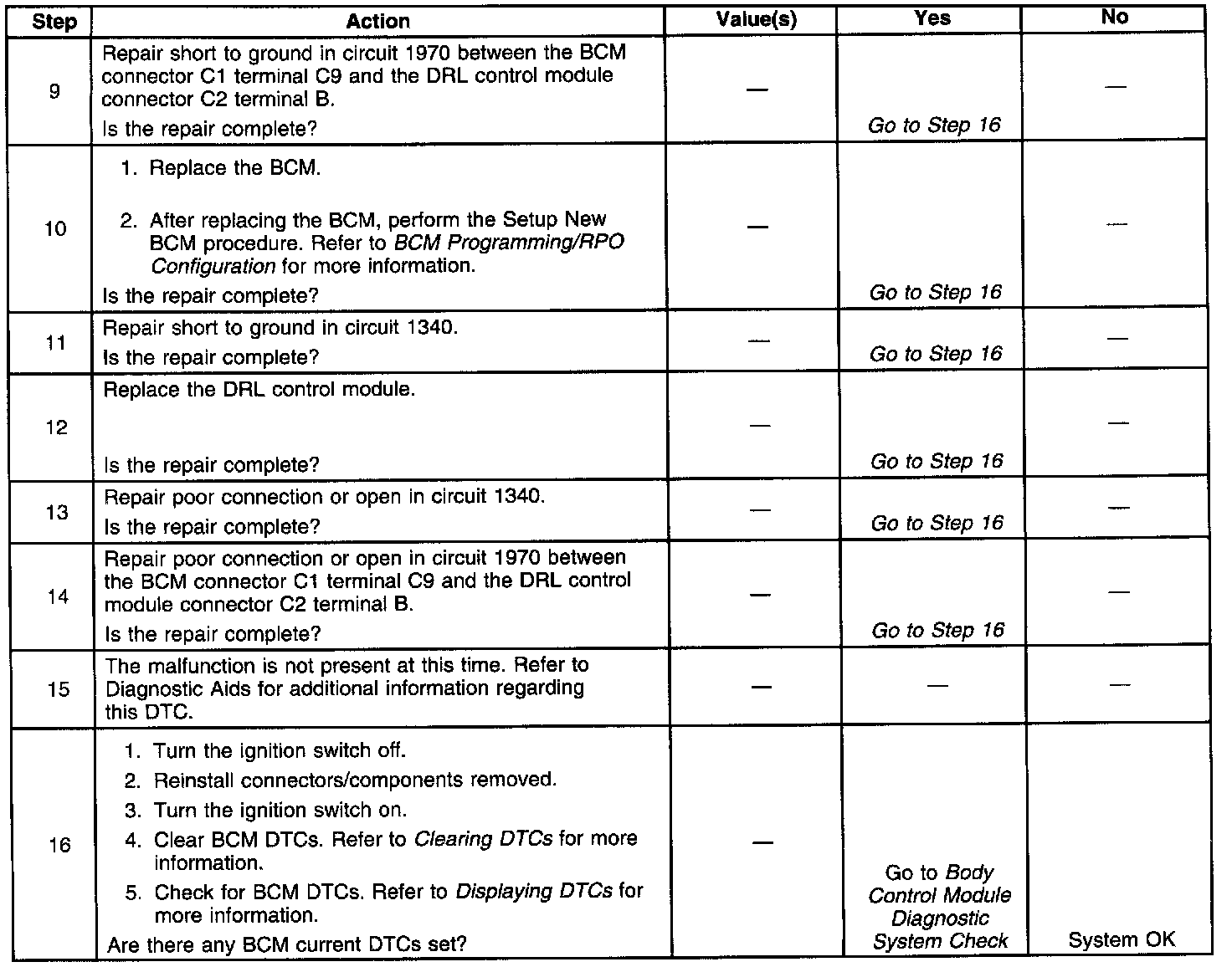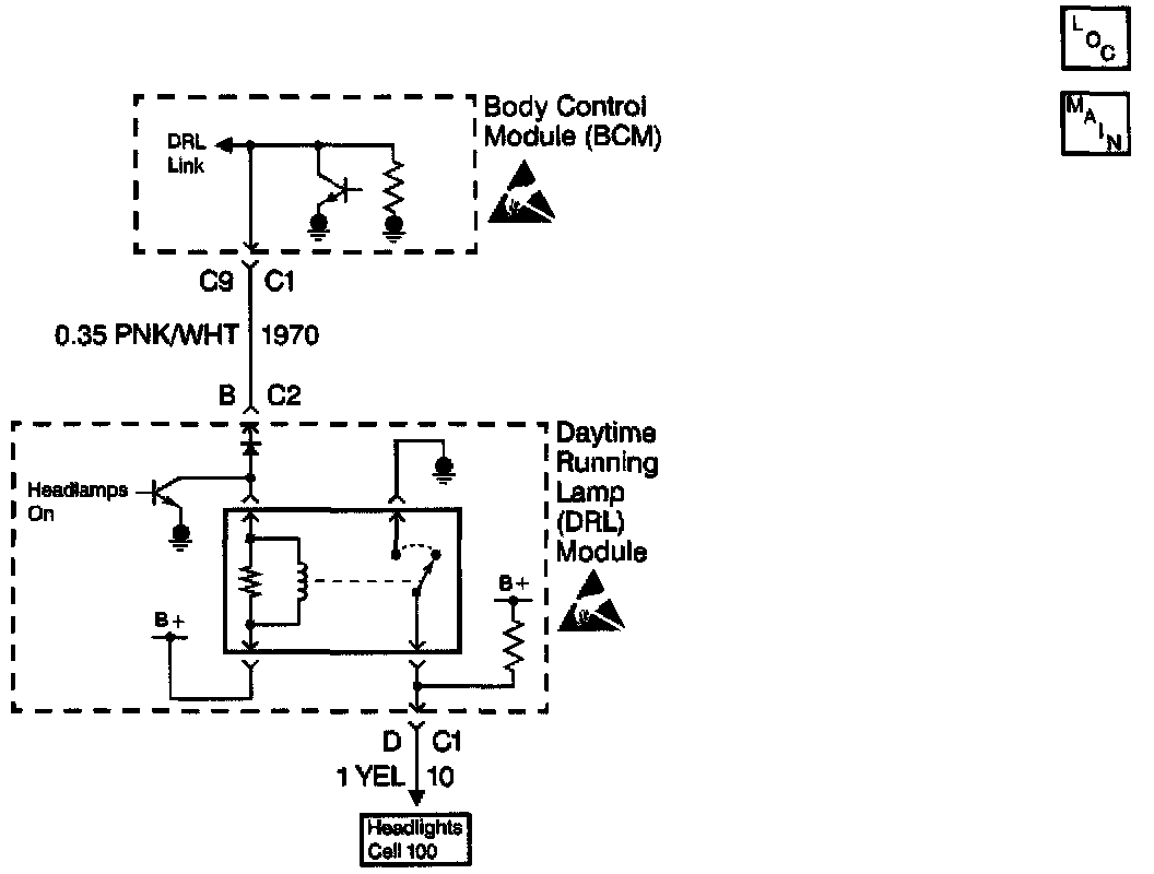 4. This step determines whether circuit 1970 has a short to ground or the DRL control module is faulty.