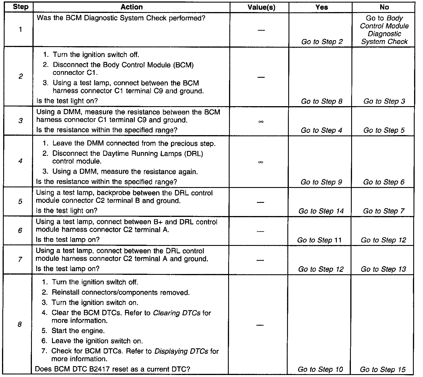 DTC B2417 DRL Circuit Open or Shorted to Ground (Part 2 Of 2):