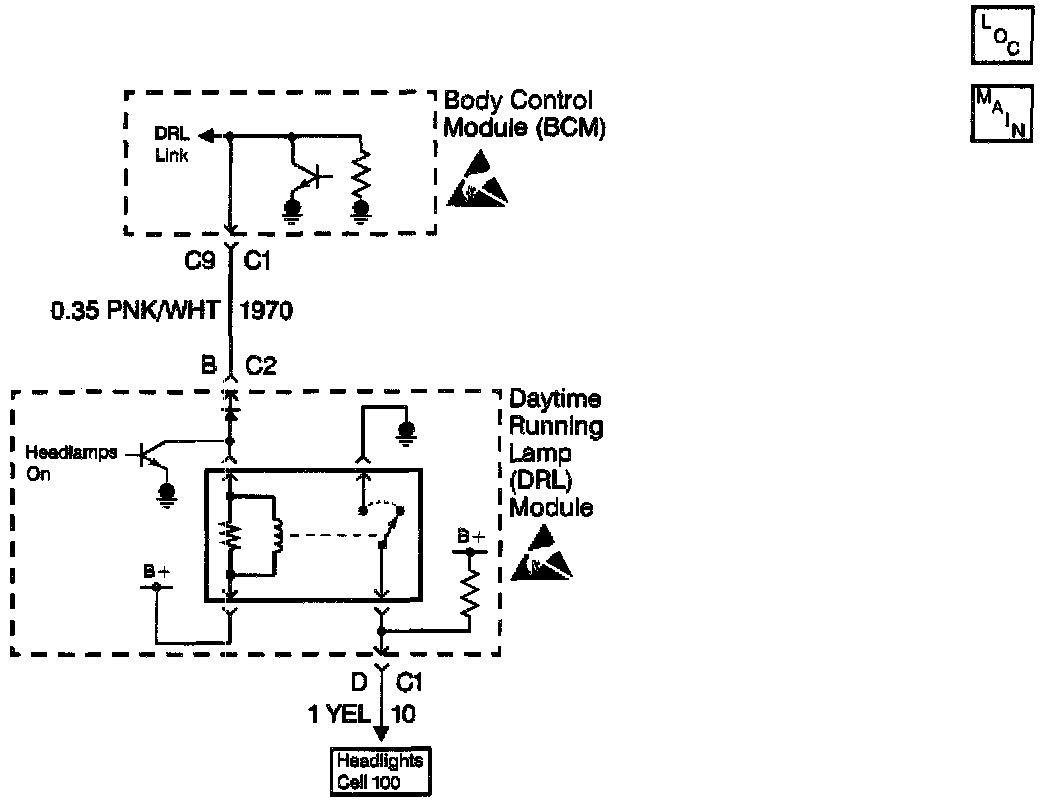 - The DRL module is shorted to B+ internally.
