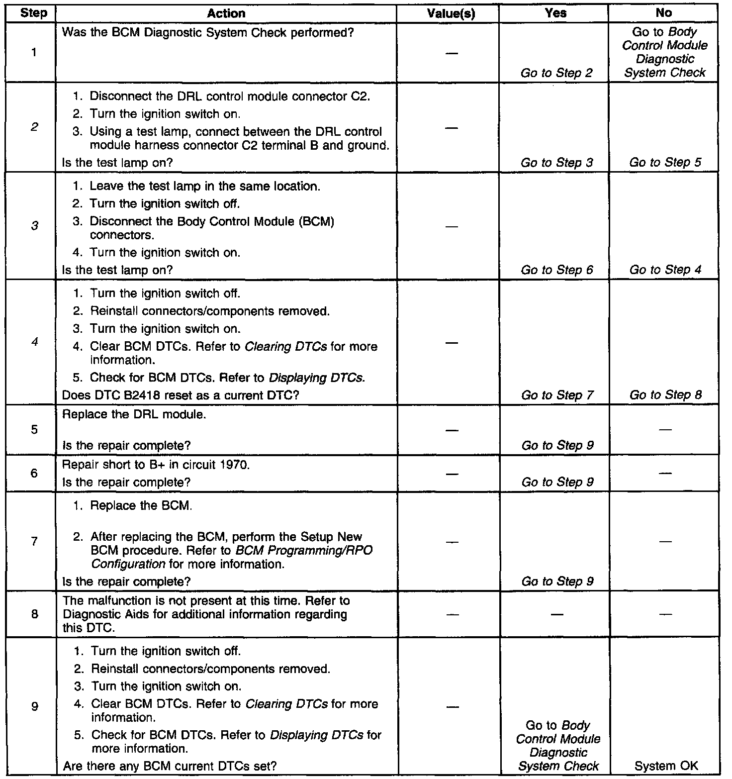 DTC B2418 DRL Circuit Shorted to B+: