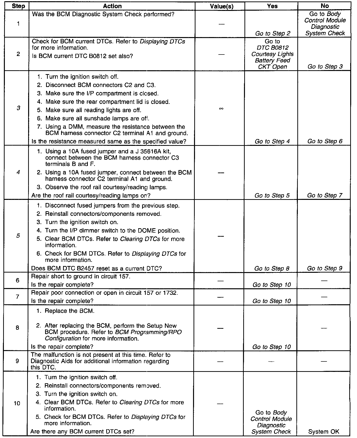 ^ The BCM no longer detects an open in circuit 157 or 1732.