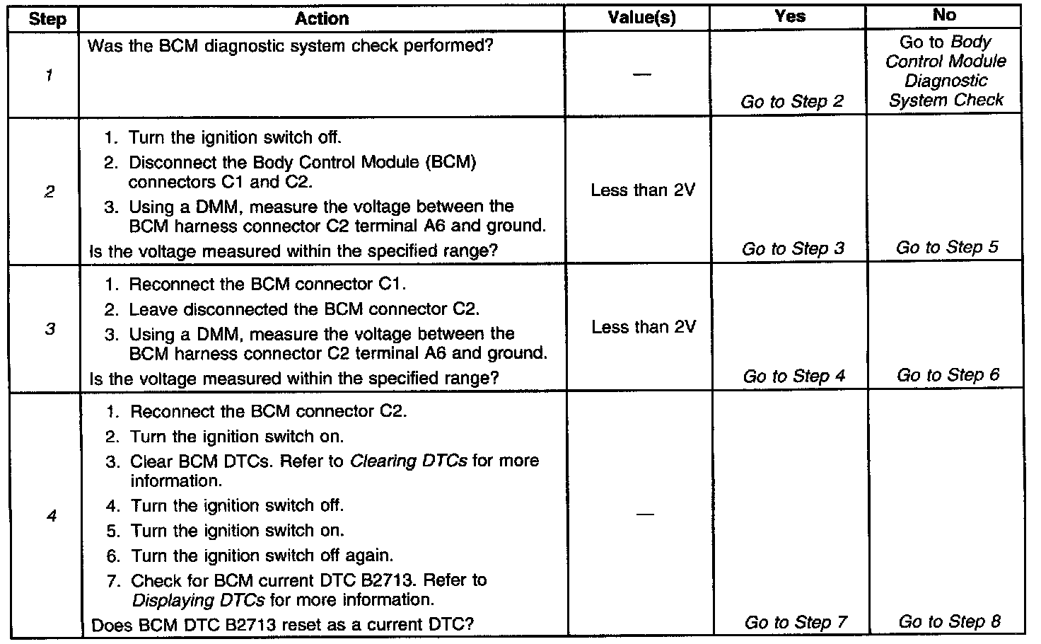 4. Checks for a faulty BCM.