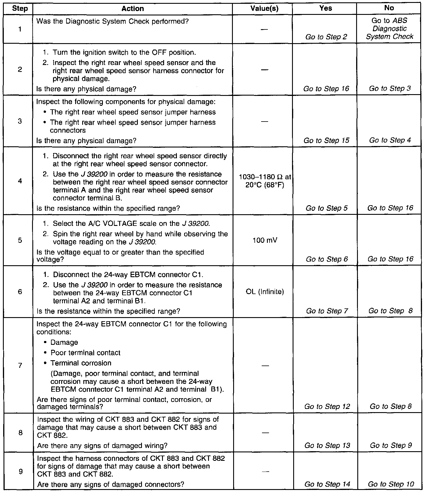 REAR WHEEL SPEED SENSOR RESISTANCE