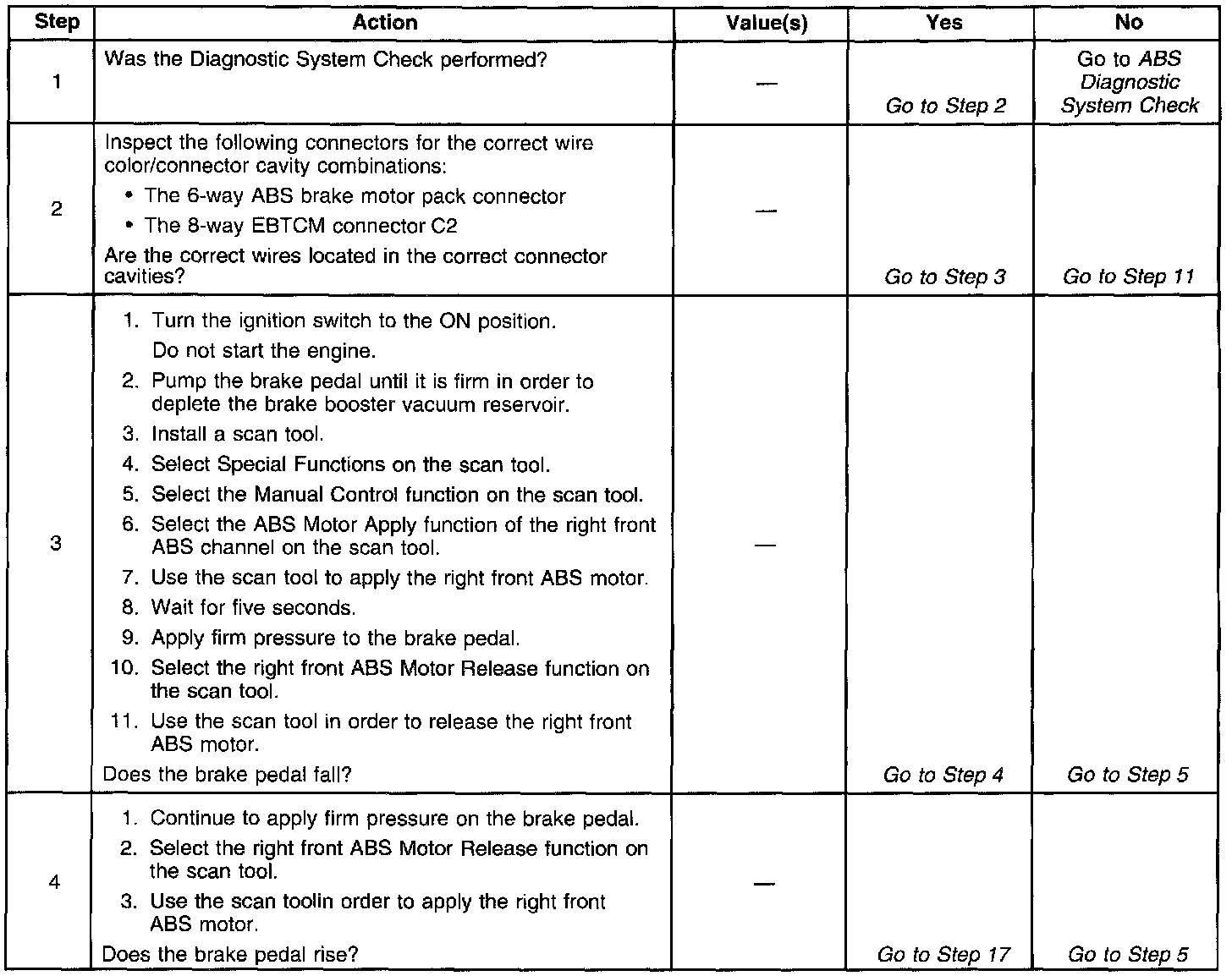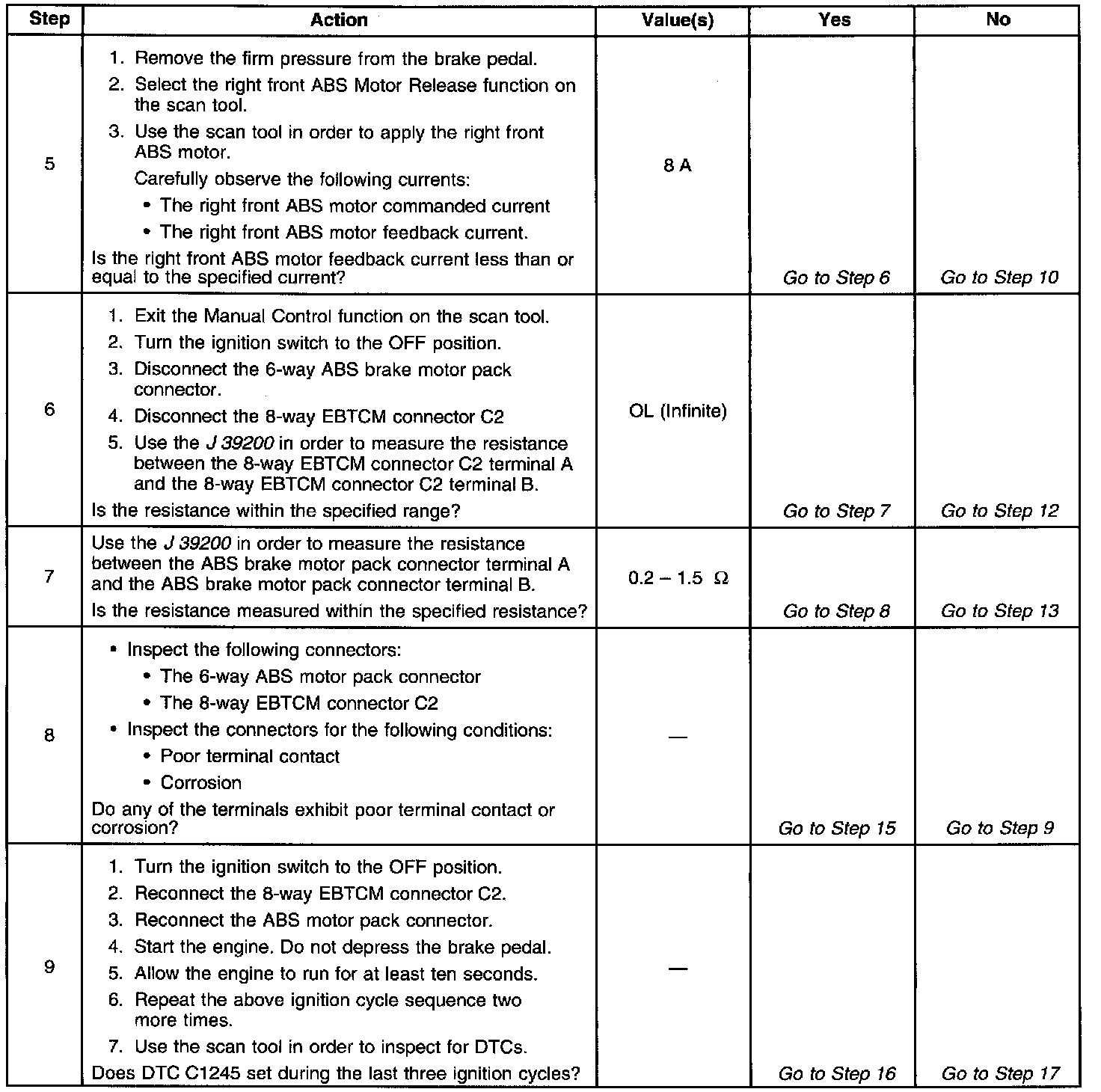 - 5 km (3 mph) when the brake is on DTC C1245 can set during ABS stops A malfunction exists if the Electronic Brake Traction Control Module (EBTCM) detects a condition in which the EBTCM cannot move the ABS motor in either direction.