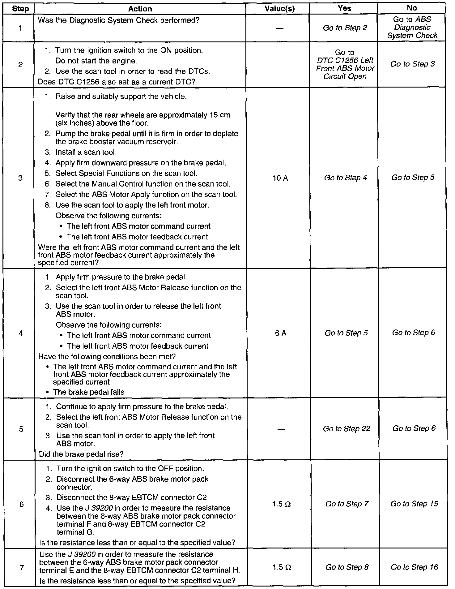 Refer to DTC C1256 Left Front ABS Motor Circuit Open If Intermittent and enhanced diagnosis shows this DTC occurs during ABS, refer to DTC C1256 Left Front ABS Motor Circuit Open