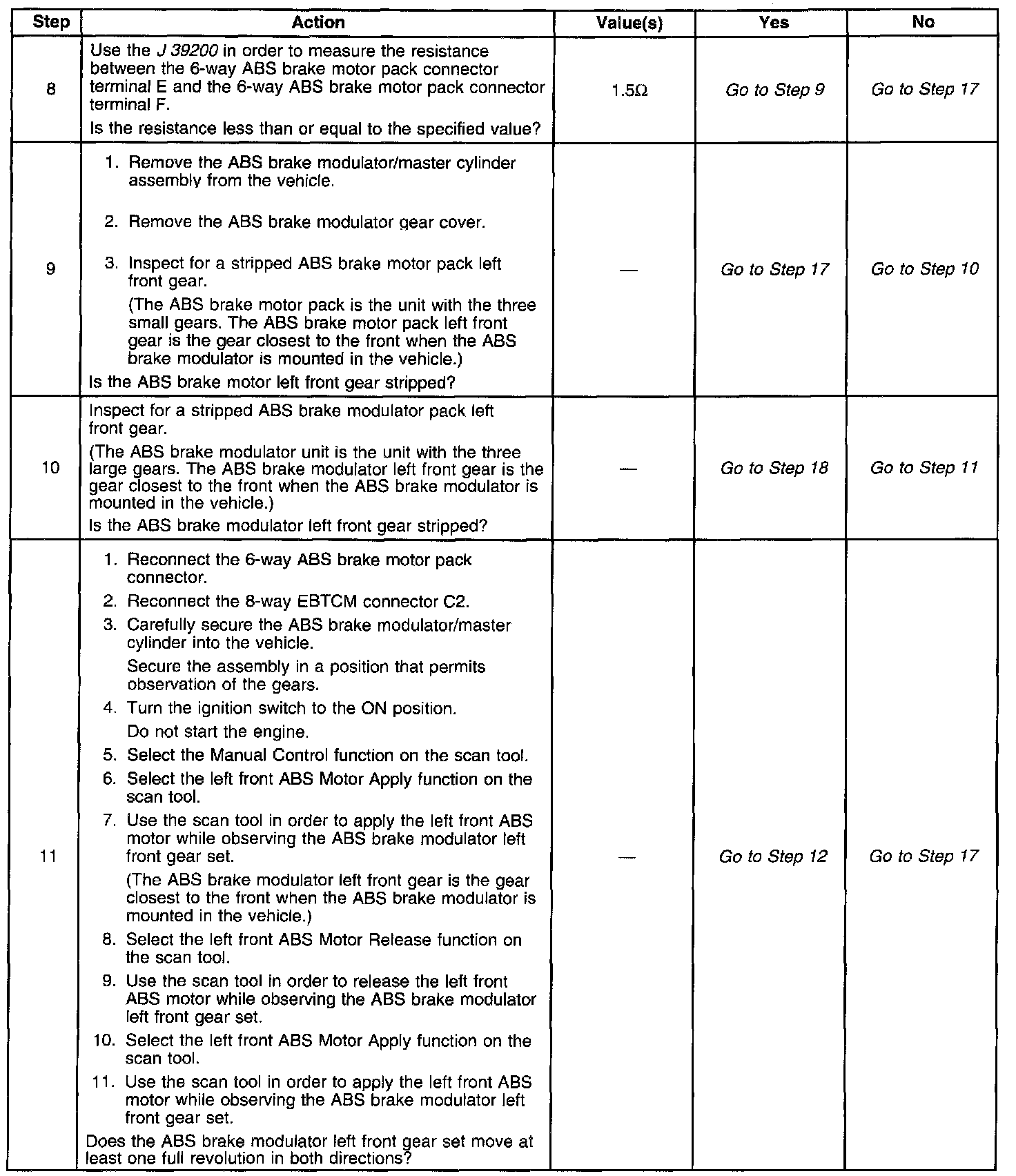 DTC C1247 detects a stripped nut or gear assembly during initialization. During the homing sequence, the piston should reach the top of the bore. Then the ABS motor stalls. If the ABS motor does not stall, the ABS motor must be spinning with little or no resistance. This indicates a nut/screw or gear malfunction.
