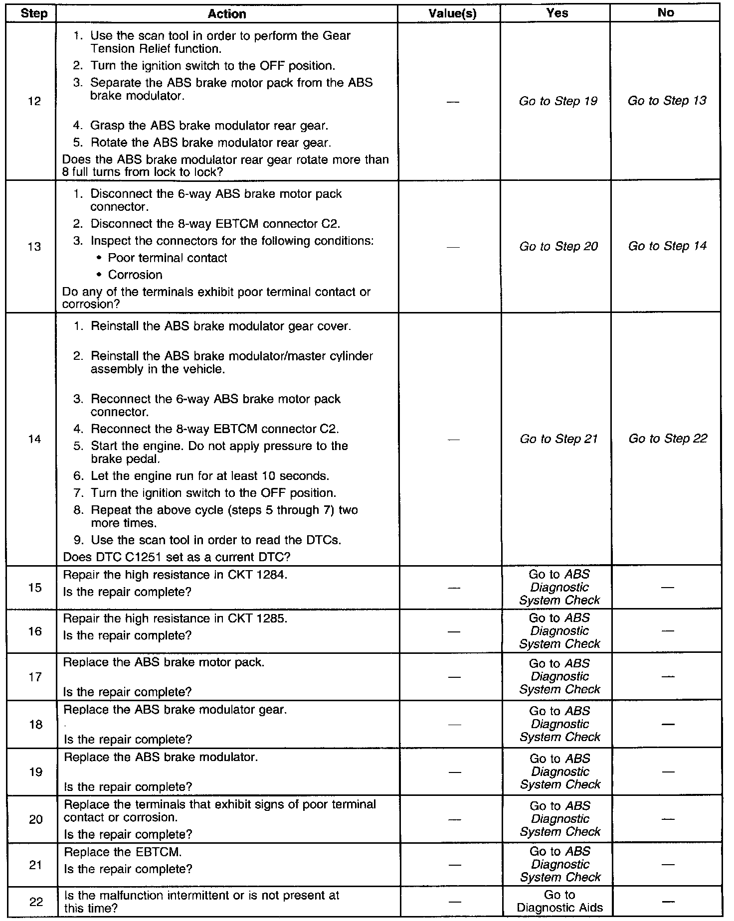 If DTC C1251 only occurs once and DTC C1264 also occurs, Refer to DTC C1264 Rear ABS Motor Circuit Open DTC C1264 Rear ABS Motor Circuit Open