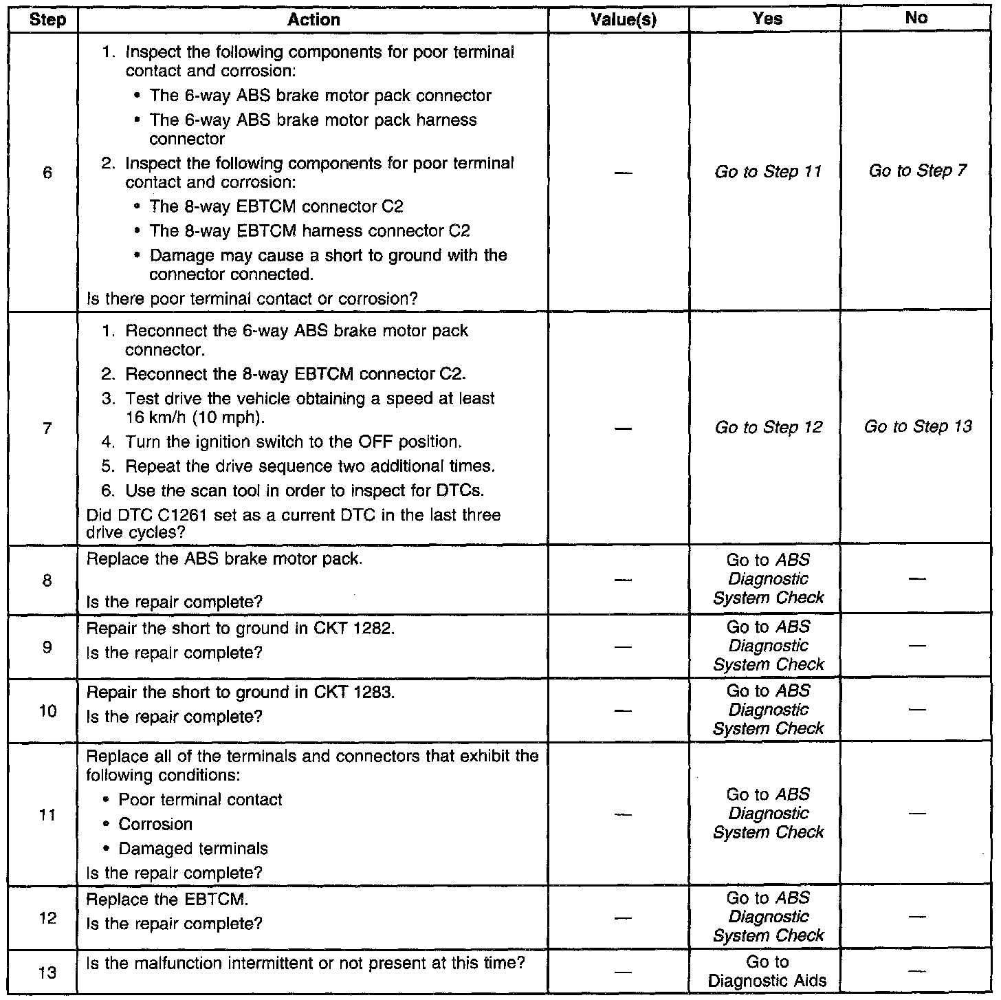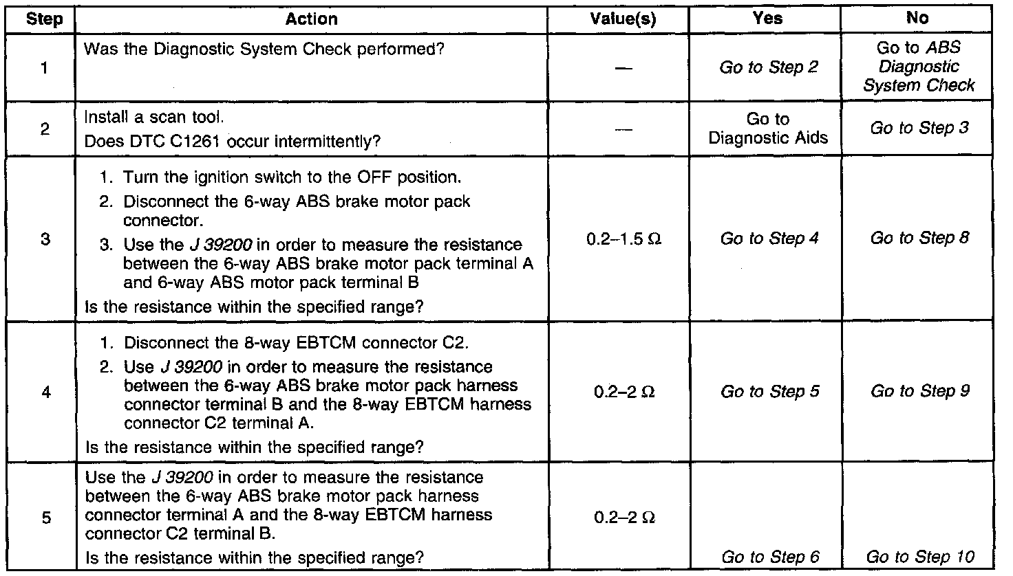 DTC 1261 identifies an ABS motor that cannot energize due to an open in the ABS motor circuitry. The malfunction will not allow proper front ABS operation.