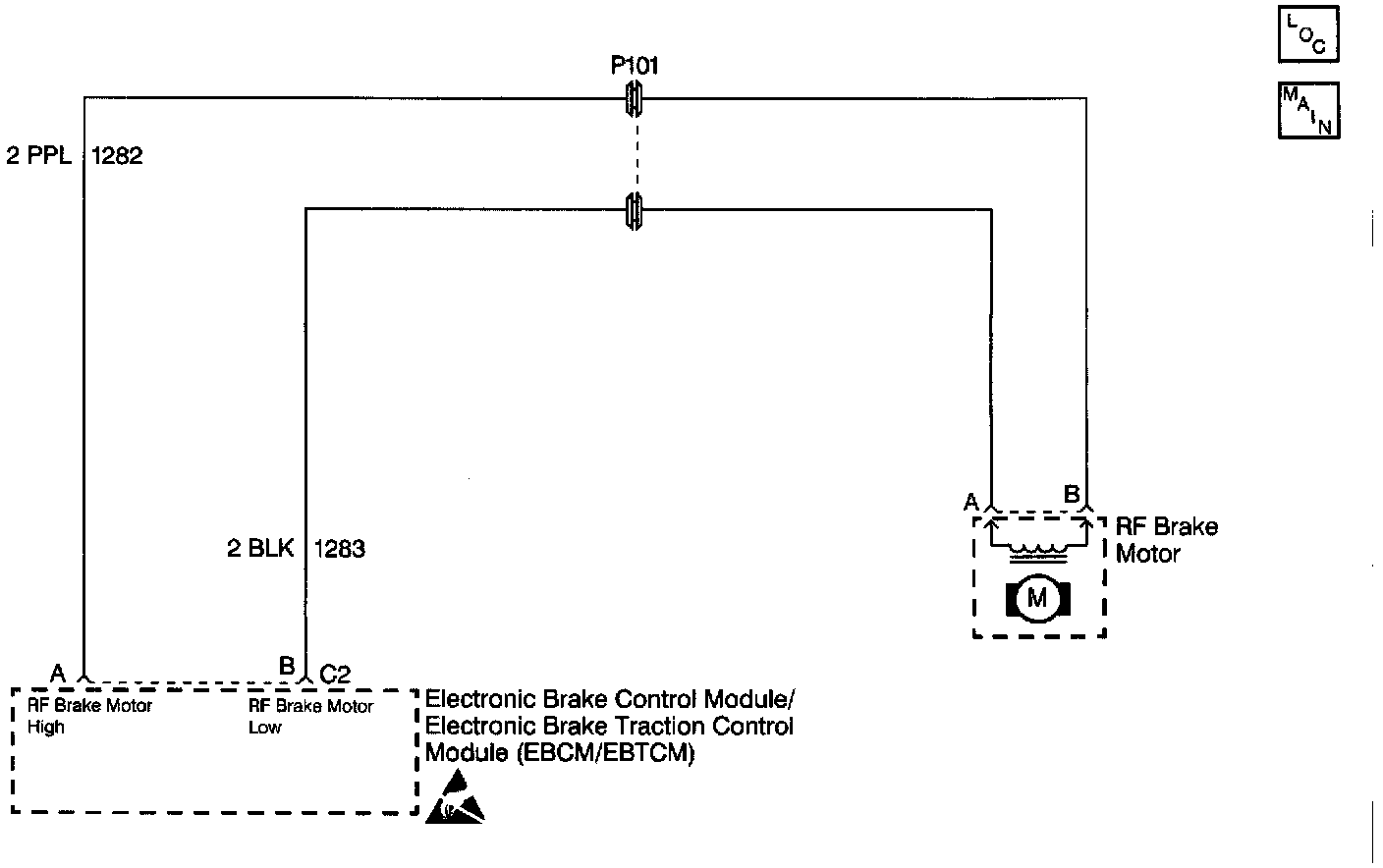 A malfunction exists if the Electronic Brake Traction Control Module (EBTCM) detects an out of range voltage on either of the right front ABS motor circuits.