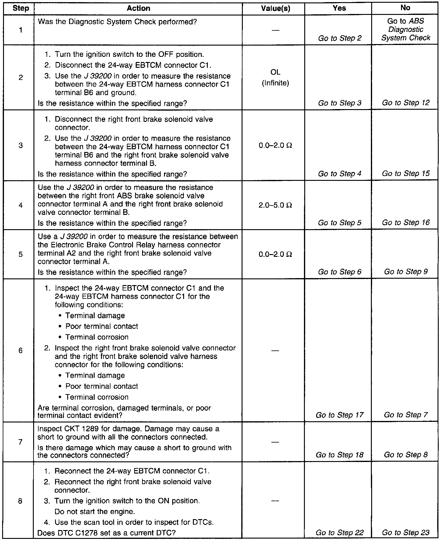 DTC C1278 can set only when the solenoid is commanded off while the Electronic Brake Control Relay is enabled.
