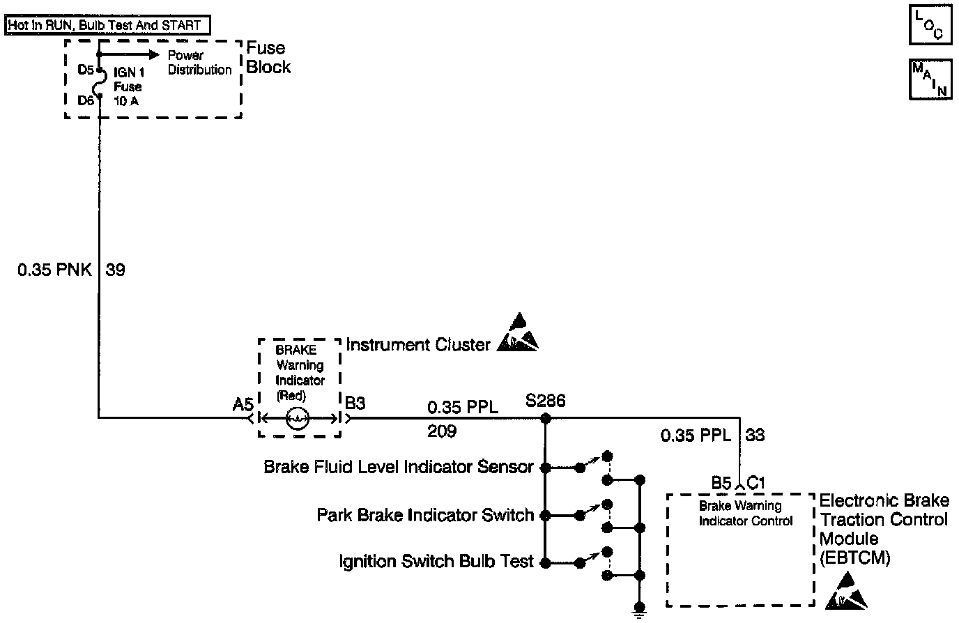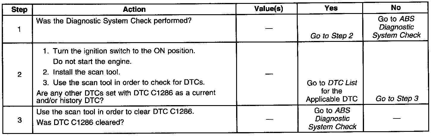 DTC C1286is an information only DTC.DTC C1286 reflects the status of the command the Electronic Brake Traction Control Module (EBTCM) issues to illuminate the red BRAKE warning indicator. If another Diagnostic Trouble Code (DTC) issues a command to illuminate the red BRAKE warning indicator, EEPROM will store DTC C1286 as a history DTC at the conclusion of the ignition cycle.