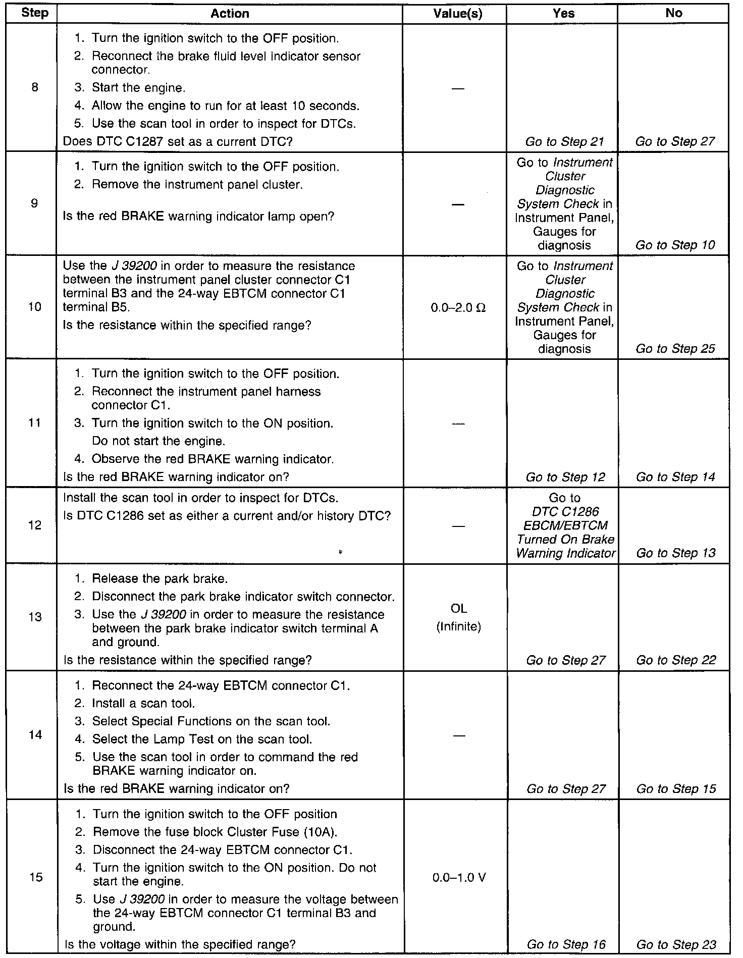 - An open driver that does not allow the EBTCM to illuminate the red BRAKE warning indicator.