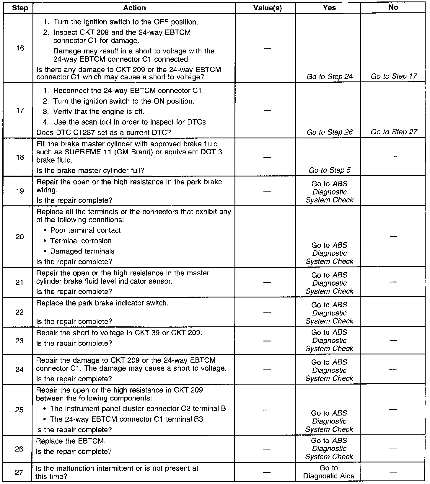 A short to ground in the circuit cannot be detected because the EBTCM is not the only device controling the red BRAKE warning indicator. The following components may also turn on the red BRAKE warning indicator: