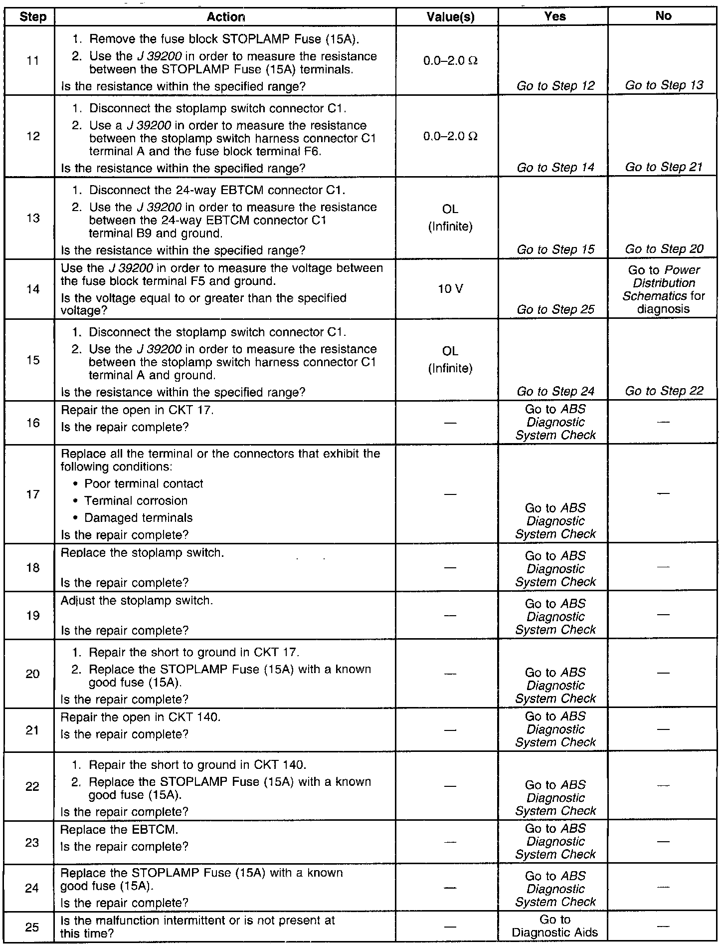 - The amber ABS/ETS warning indicators turns on.