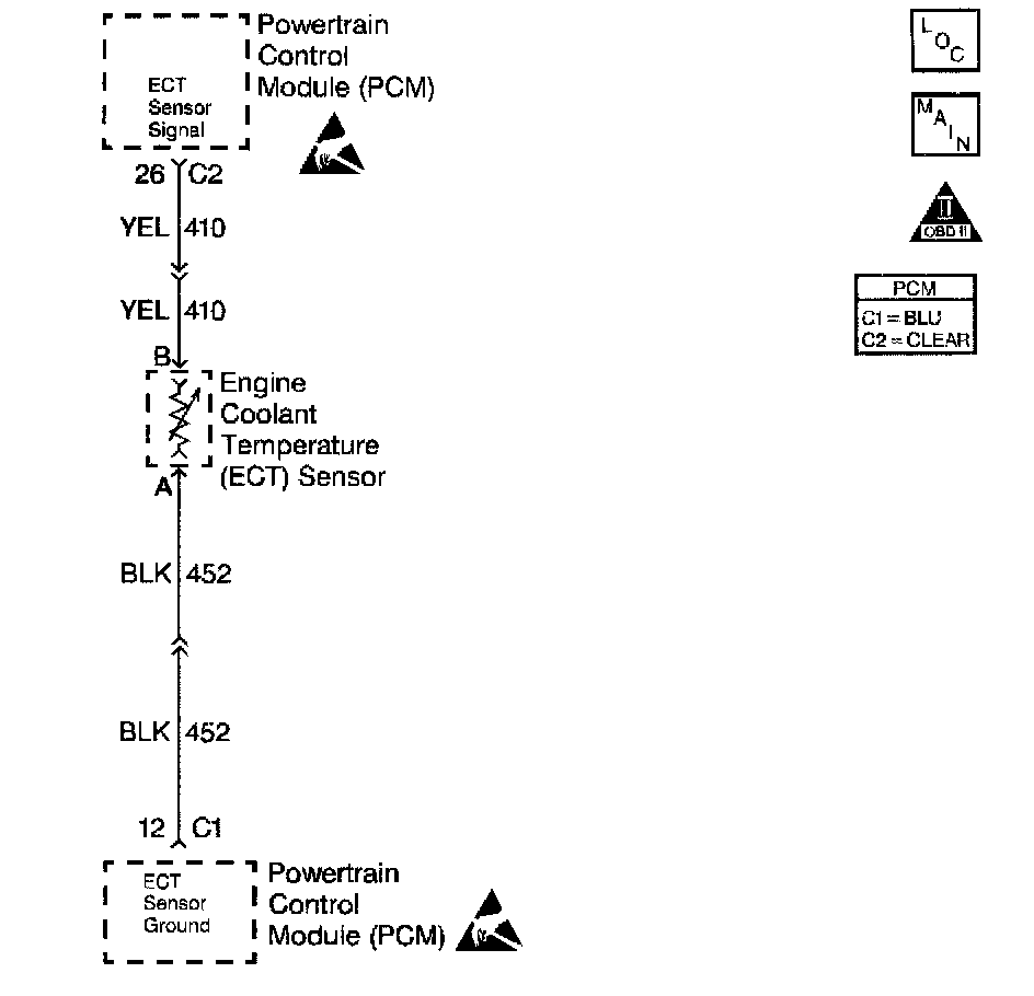 ^ Skewed or mis-scaled ECT Sensor. Refer to Temperature vs Resistance Table. Coolant Temperature Sensor/Switch (For Computer)