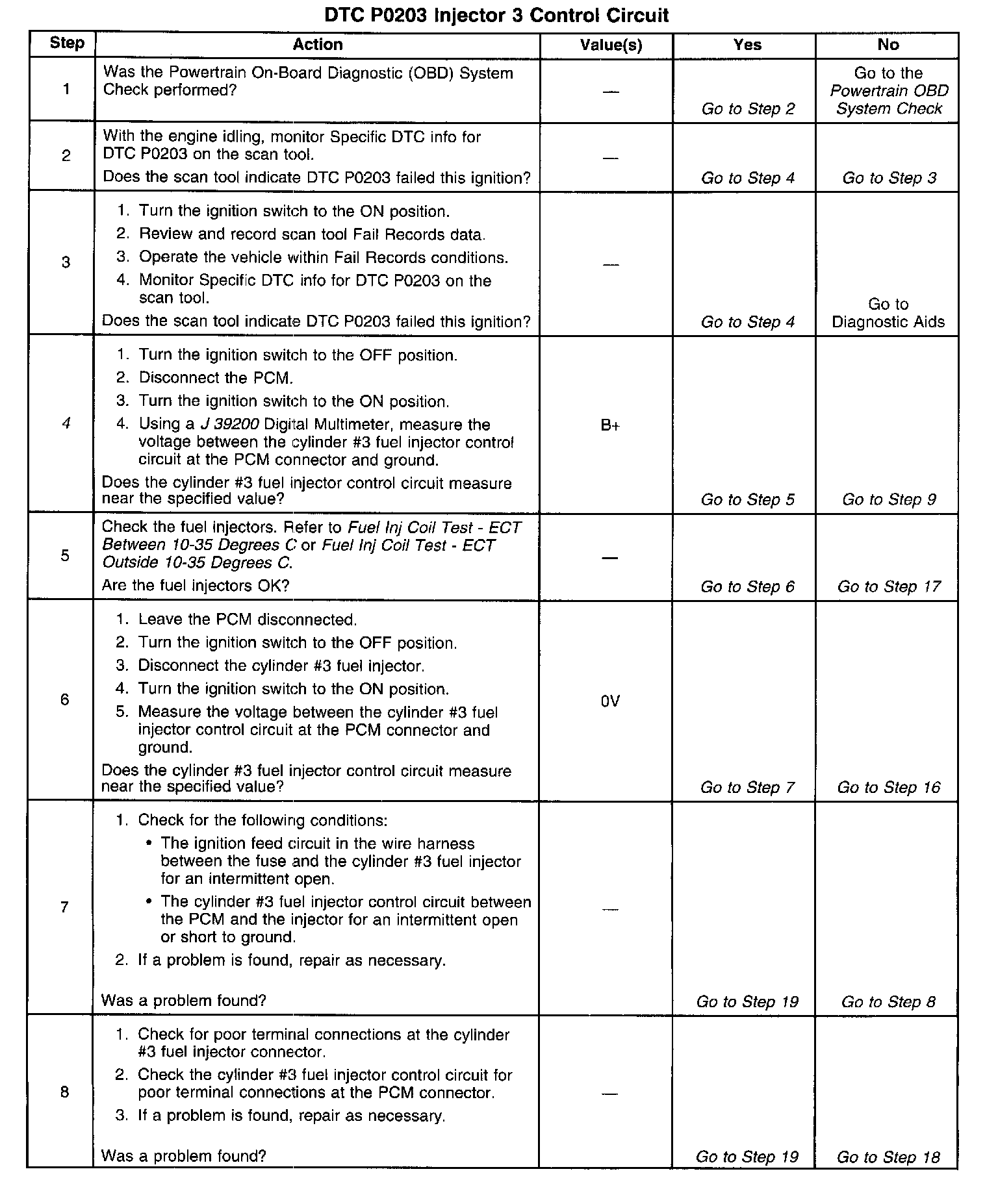 4. Checks for malfunctioning fuel injector control circuit or ignition feed wiring.