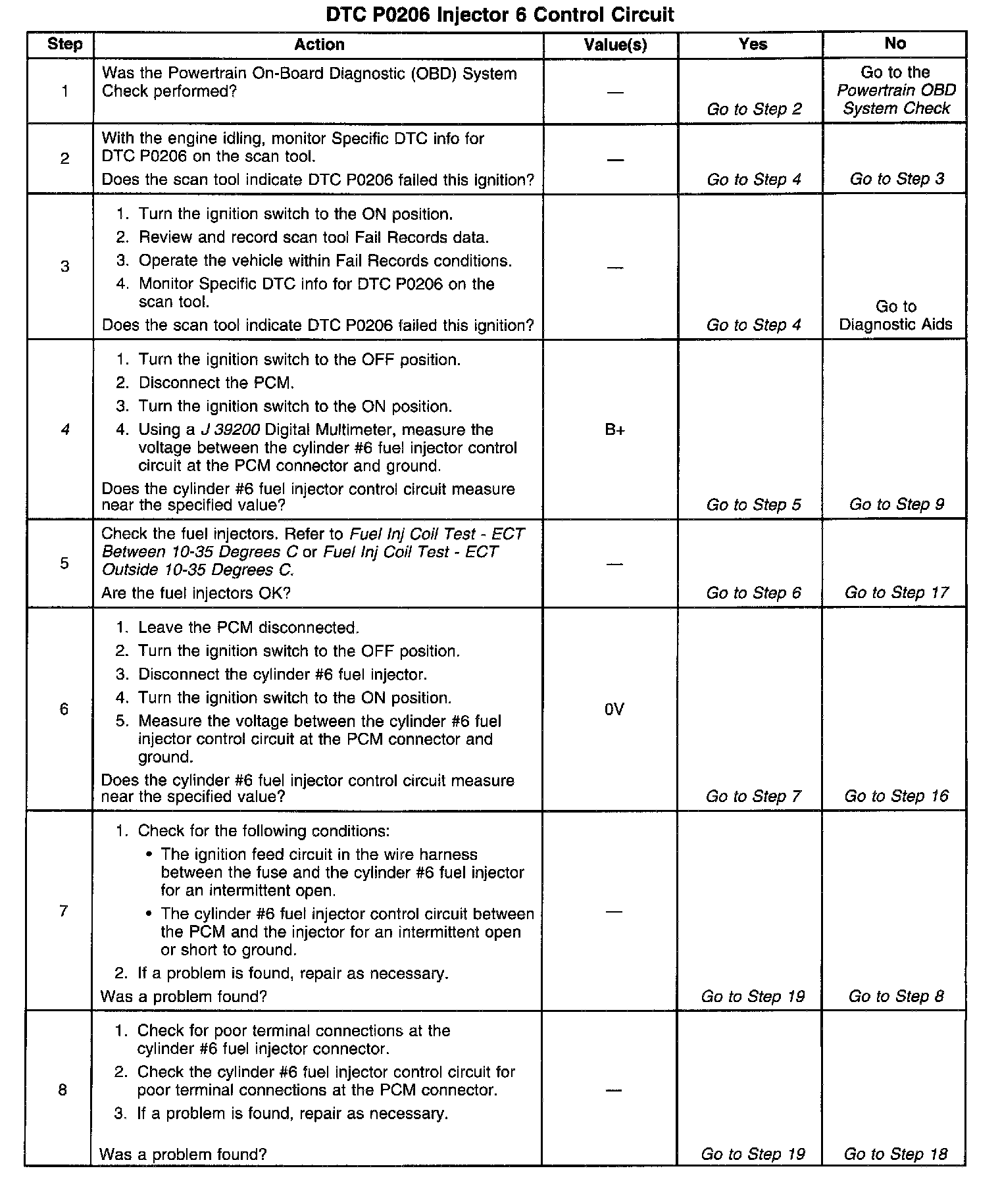 4. Checks for malfunctioning fuel injector control circuit or ignition feed wiring.
