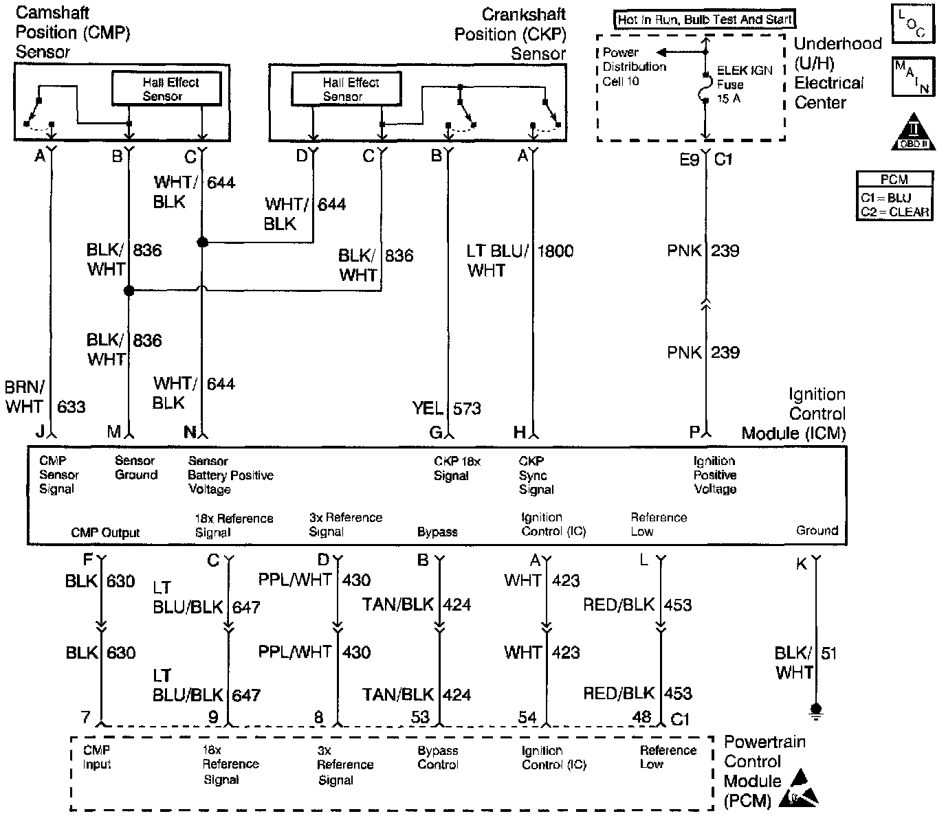 Inspect the wiring harness for damage. If the harness appears to be OK, disconnect the PCM, turn the ignition on and observe a voltmeter connected to the 18X reference circuit at the PCM harness connector while moving connectors and wiring harnesses related to the ICM.