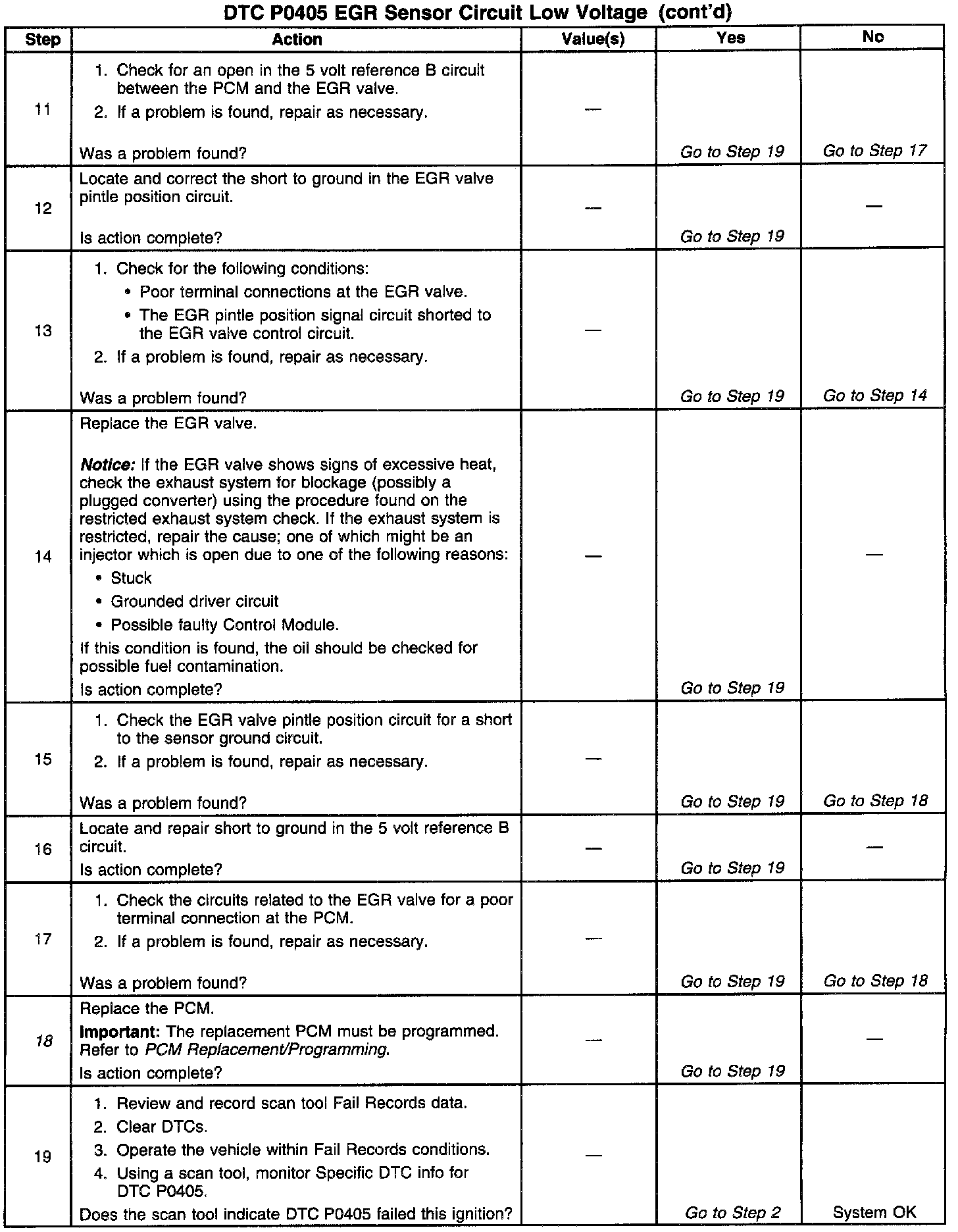 3. If DTC P0405 will only set under certain conditions, the malfunction may be intermittent; refer to Diagnostic Aids. If an intermittent wiring problem is not present, check for a poor connection at the PCM or the EGR valve.