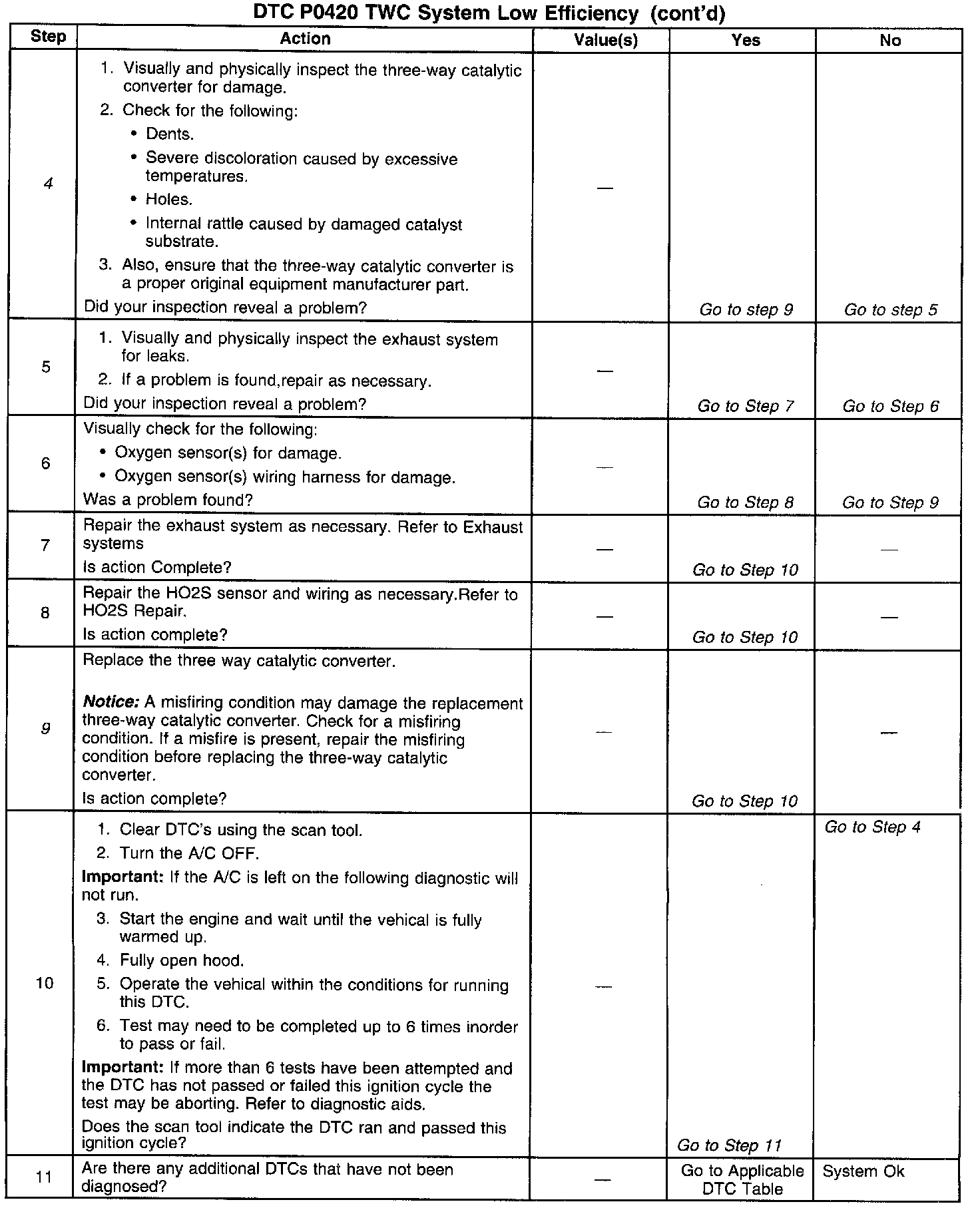 4. This step includes checks for conditions that can cause the three-way converter to appear degraded. Repair any problems found before proceeding with this table.