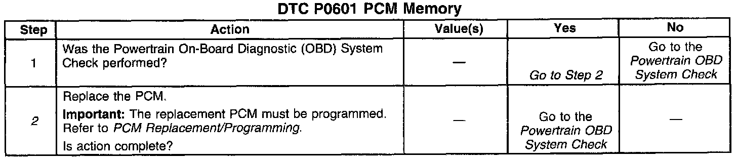 DTC P0601 indicates that the contents of the EEPROM have changed since the PCM was programmed. The only possible repair is PCM replacement. Remember to program the replacement PCM with the correct software and calibration for the vehicle.