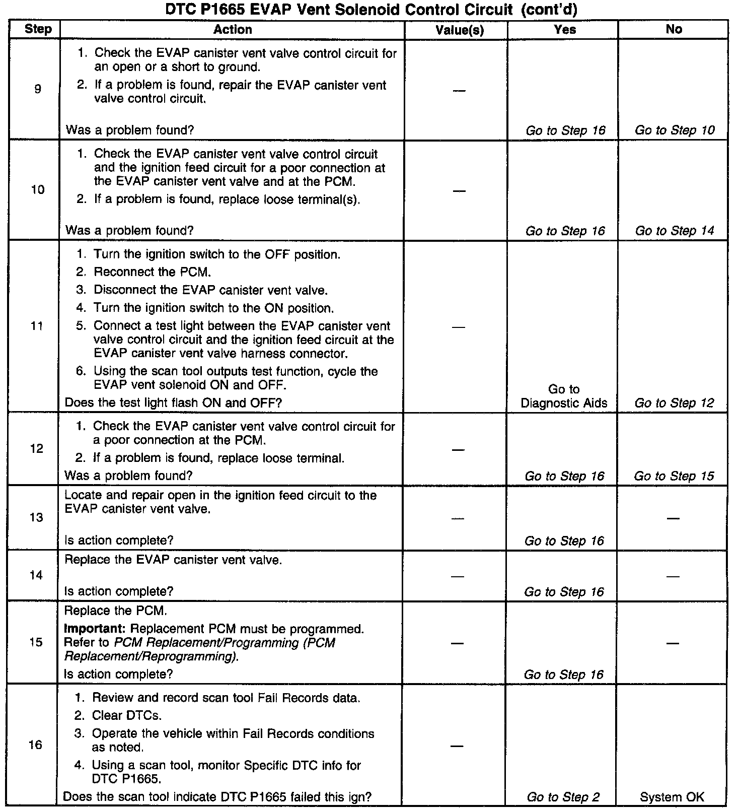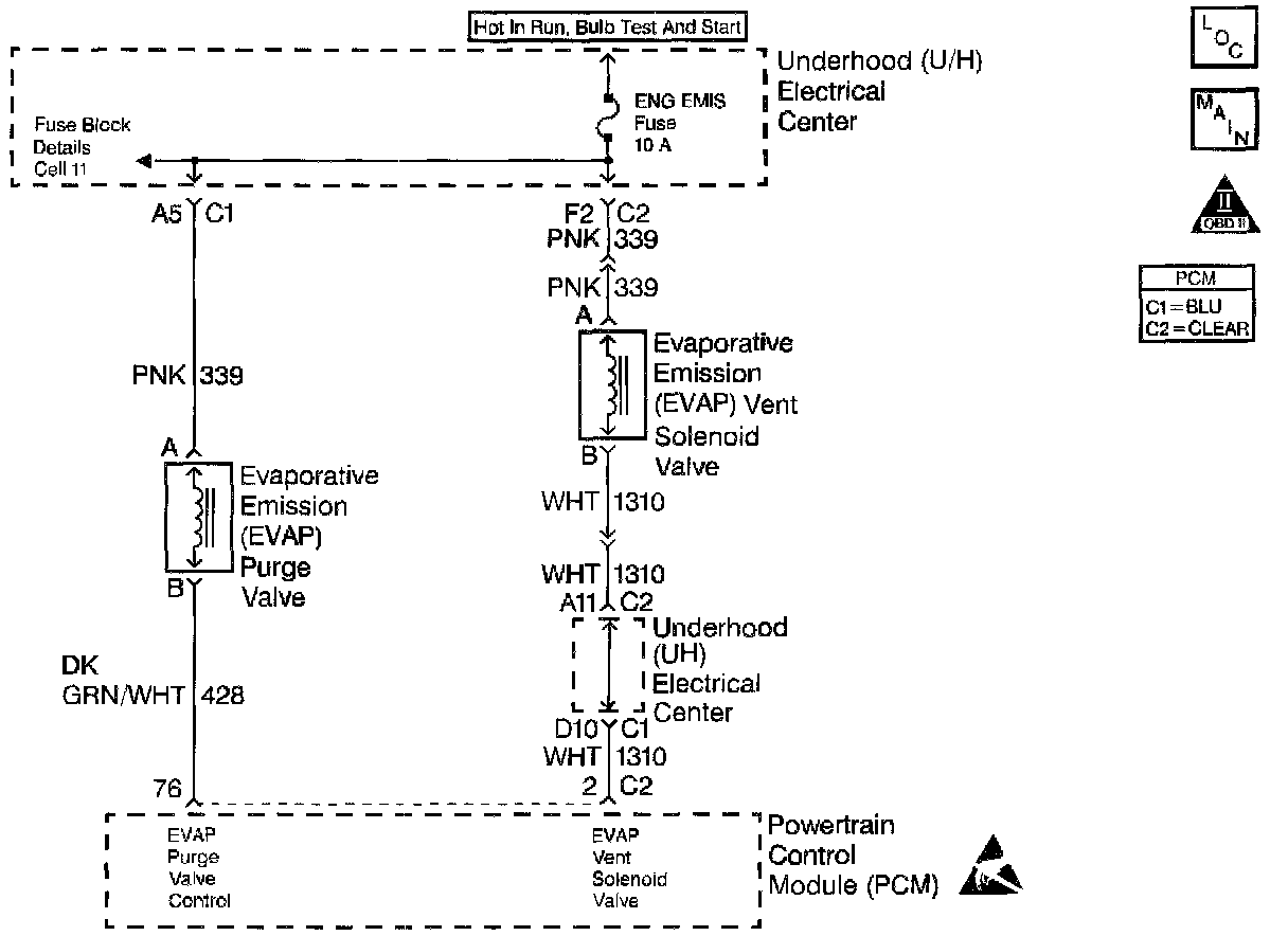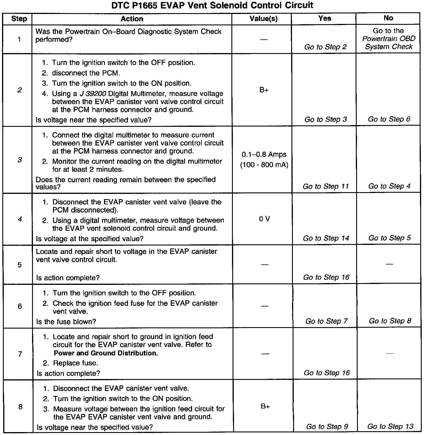 Output Driver Modules (ODMs) are used by the Powertrain Control Module (PCM) to turn on many of the current-driven devices that are needed to control various engine and Transaxle functions. Each ODM is capable of controlling up to 7 separate outputs by applying ground to the device which the PCM is commanding ON. Unlike the Quad Driver Modules (QDMs) used in prior model years, ODMs have the capability of diagnosing each output circuit individually. DTC P1665 set indicates an improper voltage level has been detected on output circuit which controls the Evaporative Emissions (EVAP) canister vent valve.
