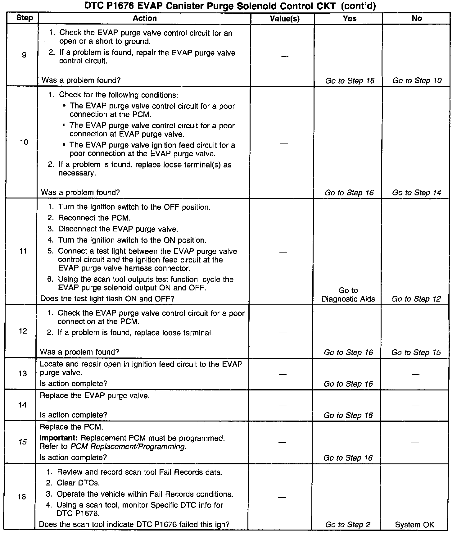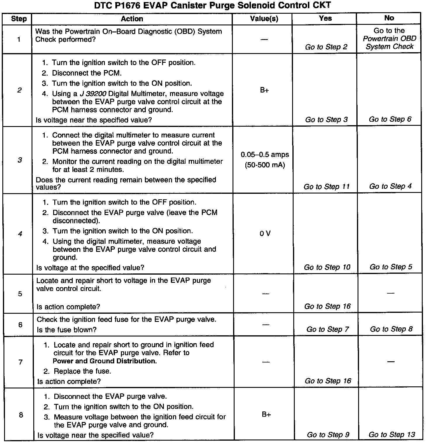 Output Driver Modules (ODMs) are used by the Powertrain Control Module (PCM) to turn on many of the current-driven devices that are needed to control various engine and Transaxle functions. Each ODM is capable of controlling up to 7 separate outputs by applying ground to the device which the PCM is commanding ON. Unlike the Quad Driver Modules (QDMs) used in prior model years, ODMs have the capability of diagnosing each output circuit individually. DTC P1676 set indicates an improper voltage level has been detected on output circuit which controls the Evaporative Emissions (EVAP) purge solenoid.
