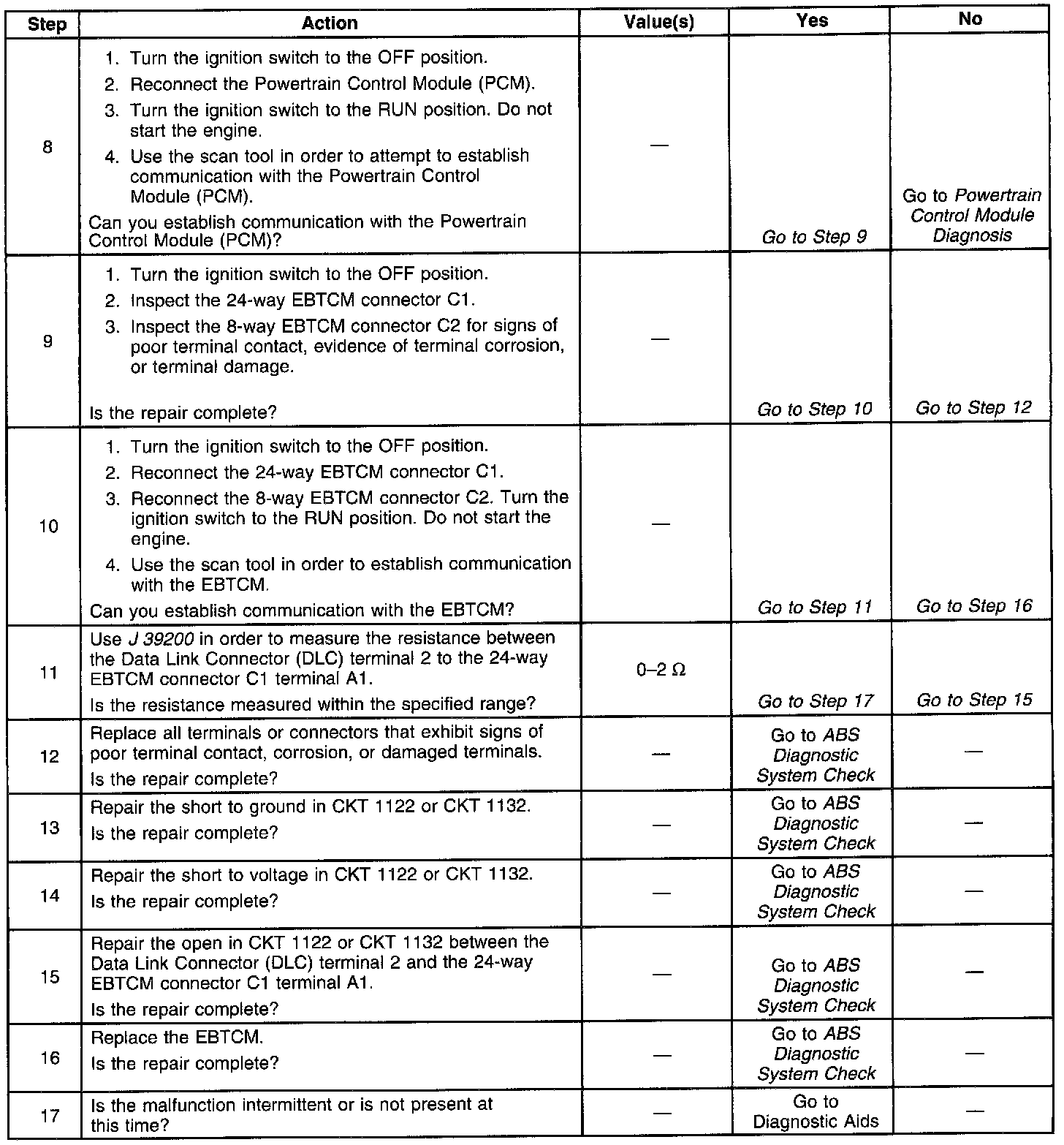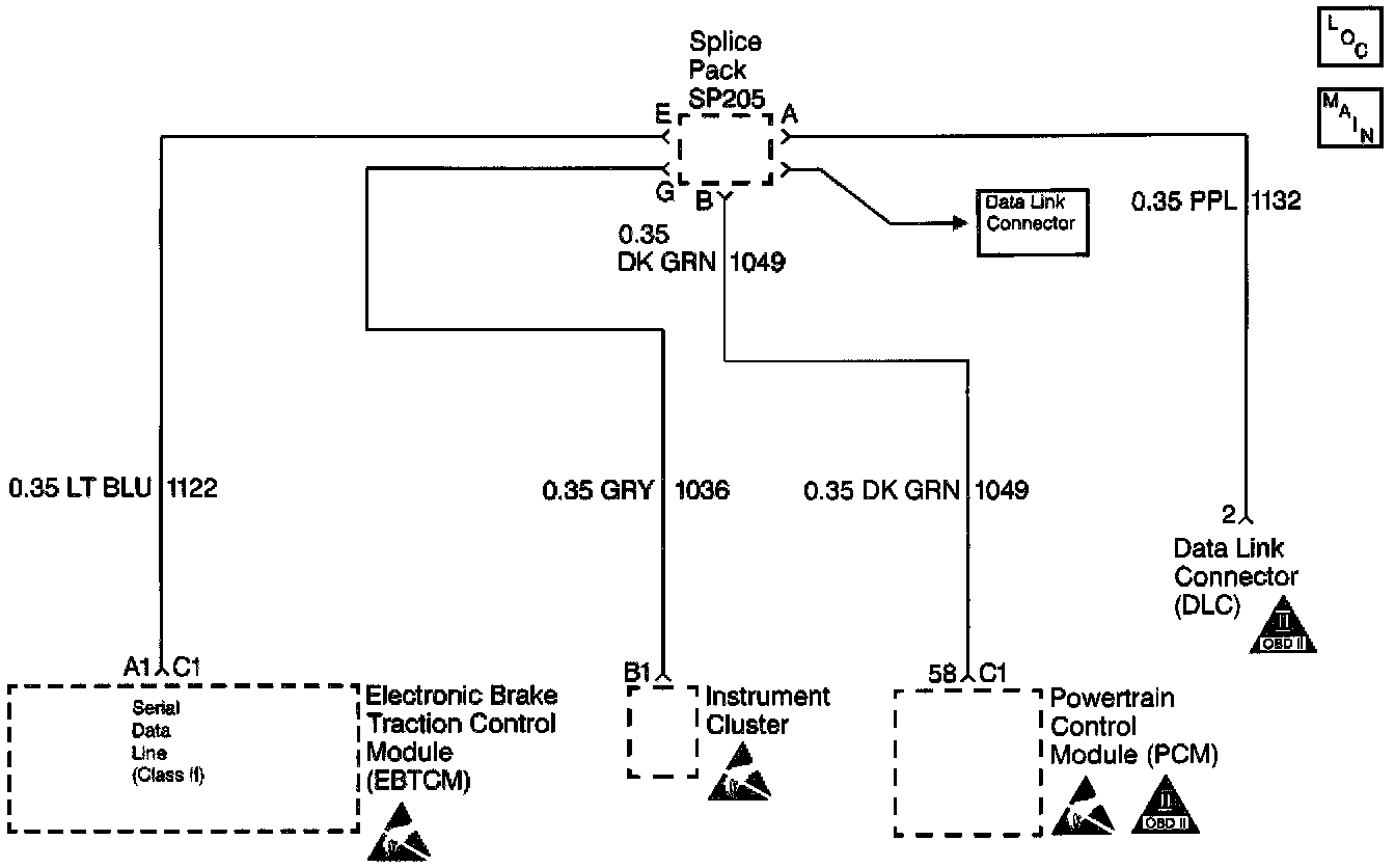 The serial data communications circuits (CKT 1122, CKT1132 and CKT 1049) is used to transmit messages from one electronic control module to another when interface is necessary between systems. The ABS/ETS systems depends on information to and from the PCM for proper operation.