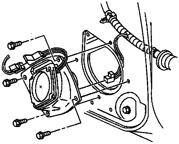 Tighten the front door speaker retaining screws to 2 N.m (18 Lb in).