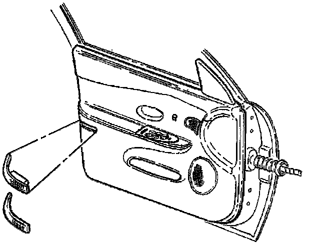 2. Remove the warning reflector from the front door inner trim panel using a small flat-bladed tool. Push on the tabs from the top of the warning reflector.