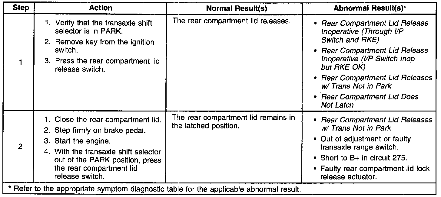 Rear Compartment Lid Release System Check: