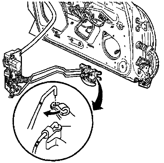 9. Remove the rear door lock with the inside handle rods attached.