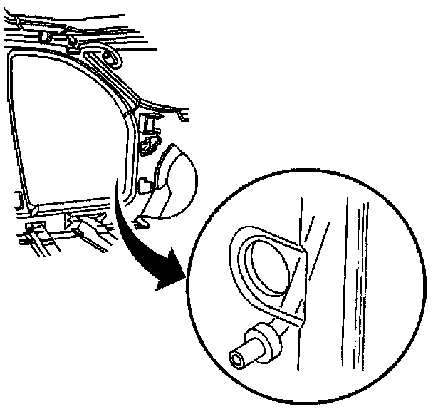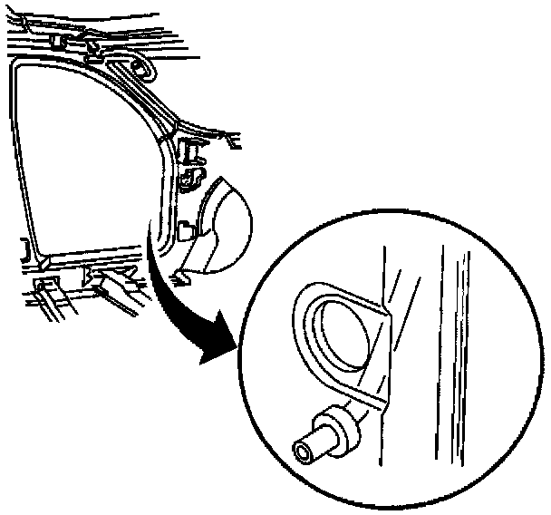 6. Remove the grommet from the hole at the body hinge pillar.