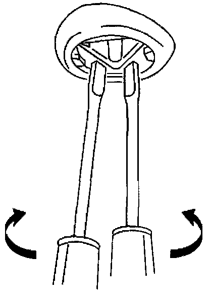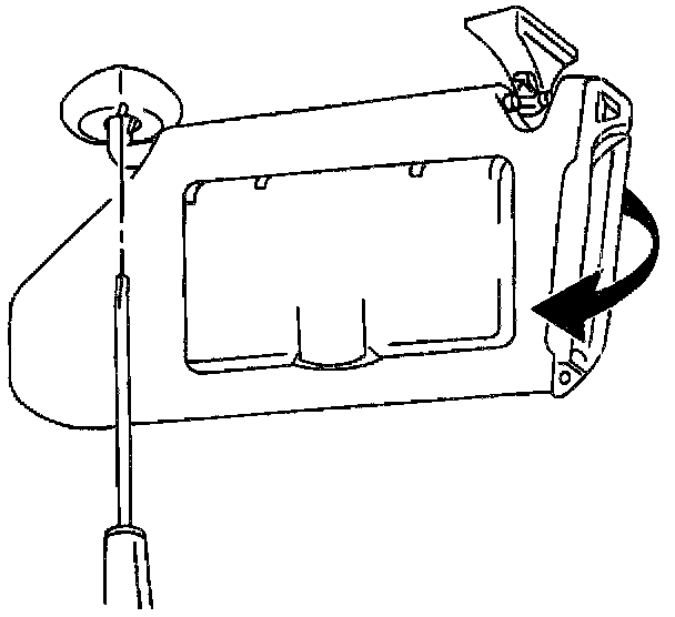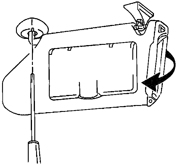 4. Holding the flat-bladed tool stationary, slowly rotate the sunshade, about four (4) inches towards the rear of the vehicle while gently pulling downward.