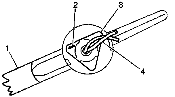 4. Align the arrow (2) on the top side of the sunshade retainer (3) until it is pointing parallel with the top edge of the sunshade (1).