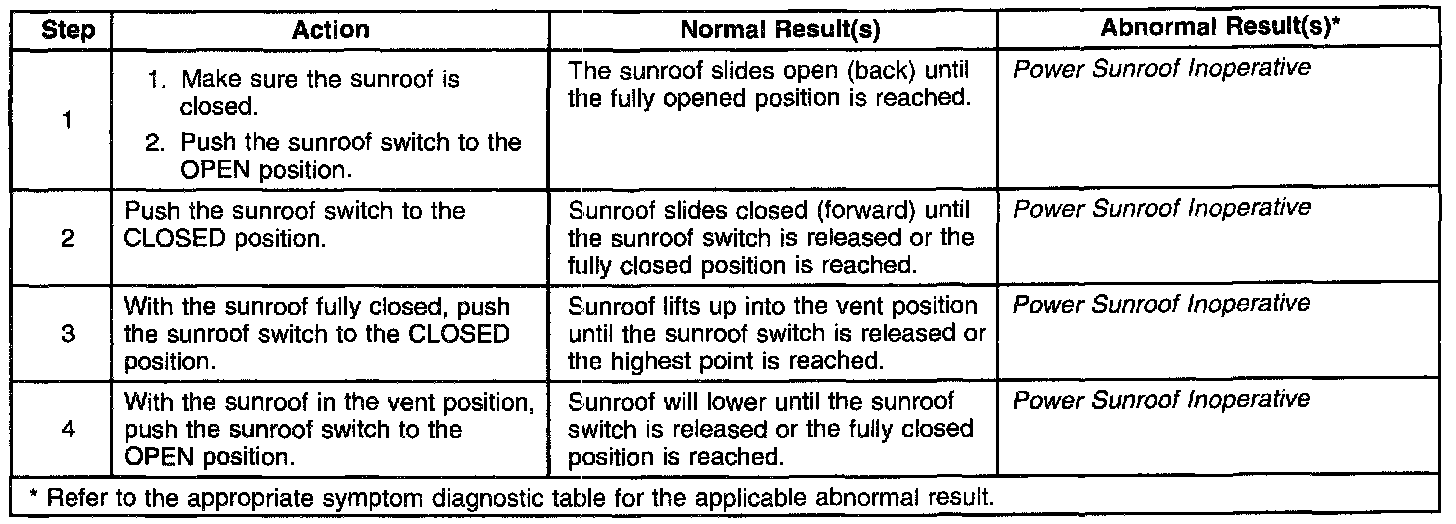 Power Sunroof System Check: