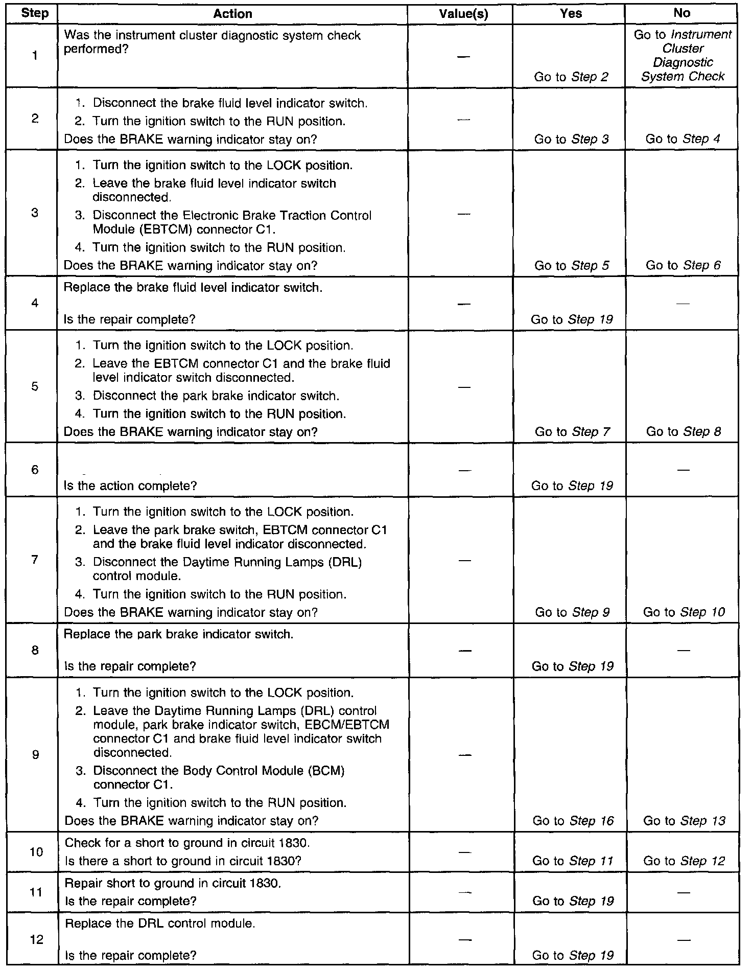 Brake Warning Indicator Always On