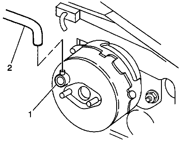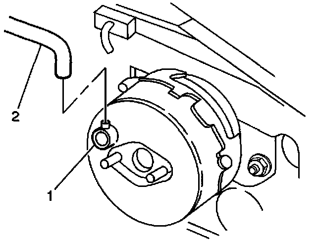 1. Disconnect the brake booster vacuum hose (2) at the vacuum check valve (1).