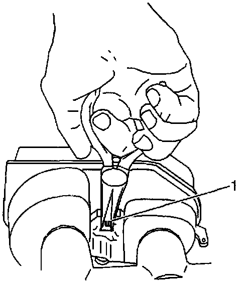 2. Remove the fluid level sensor (1). Use needle nose pliers in order to compress the switch locking tabs at the outboard side of the master cylinder.