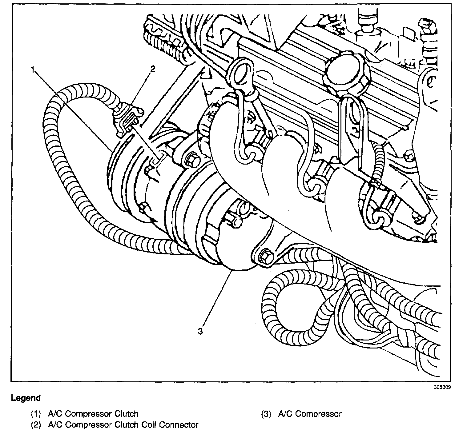 A/C Compressor - Lower RH Front Of Engine: