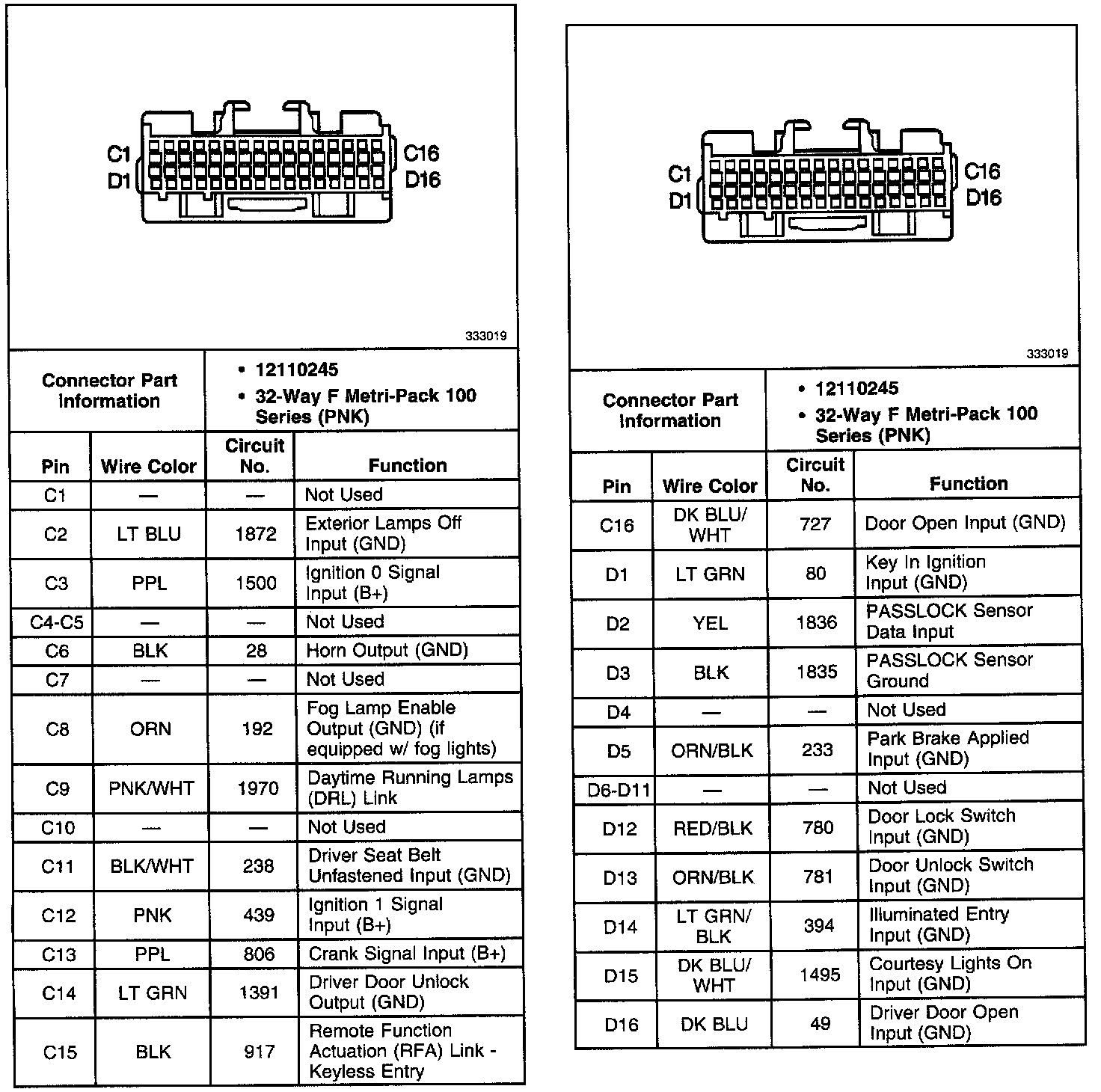 Body Control Module (BCM) Connector: C1: