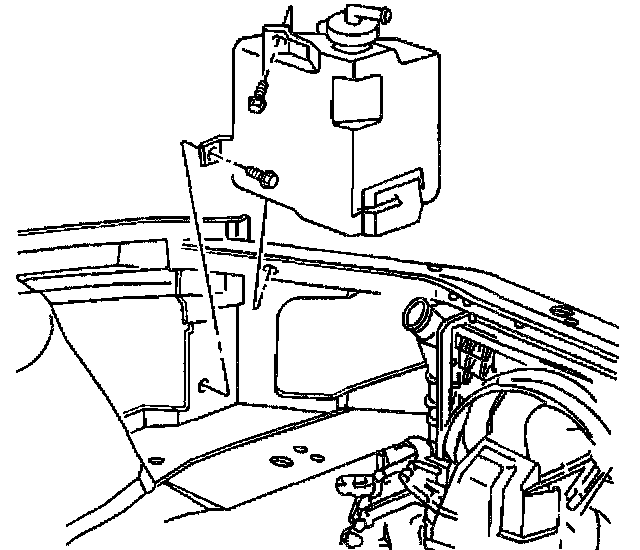 6. Remove the coolant reservoir retainer clips and reservoir.