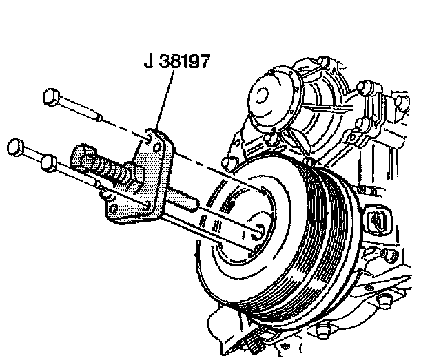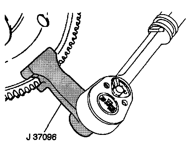 3. Install the crankshaft balancer retaining bolt. Use the J 37096 to keep the flywheel from turning.