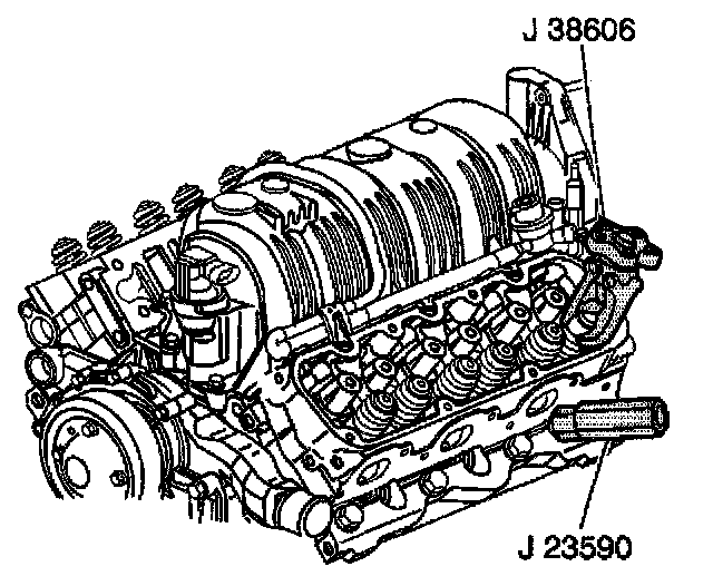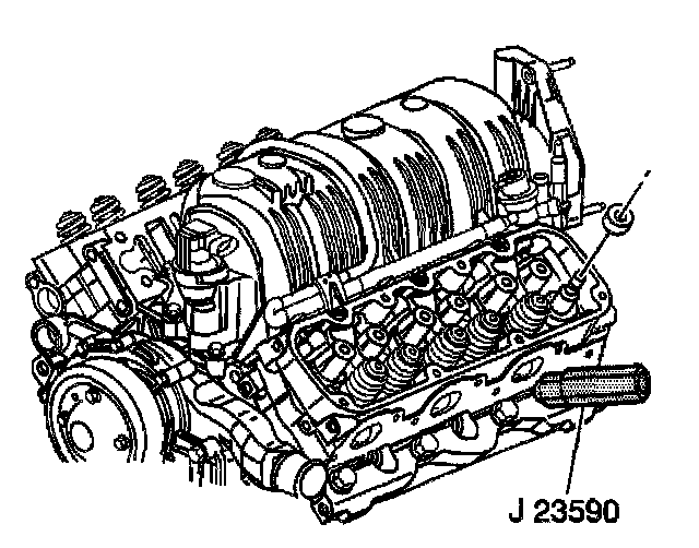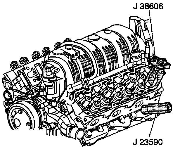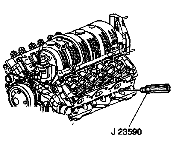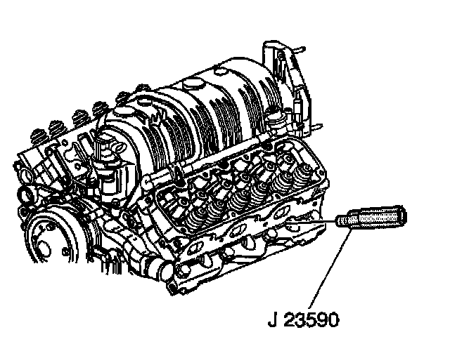 4. Install the J 23590 to the spark plug port and apply compressed air in order to hold the valves closed.