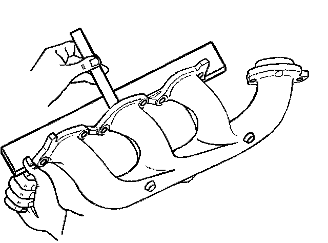4. Inspect the exhaust manifold flange for straightness, using a straight edge and a feeler gauge.