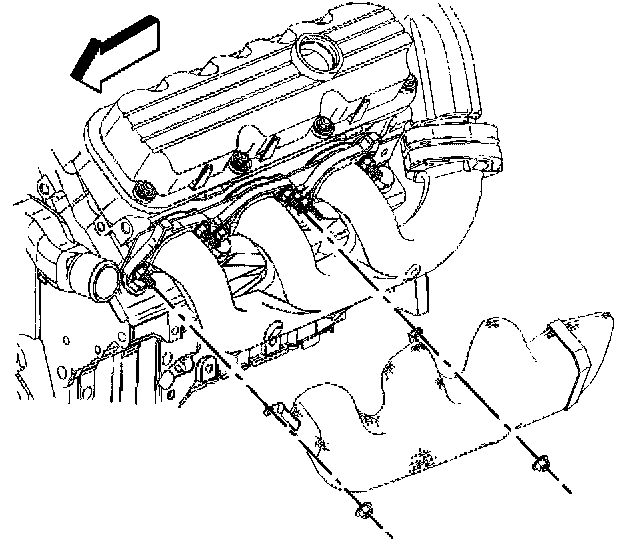 1. Remove the exhaust manifold heat shield nuts.2. Remove the exhaust manifold heat shield.