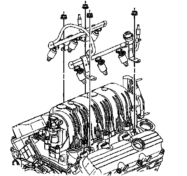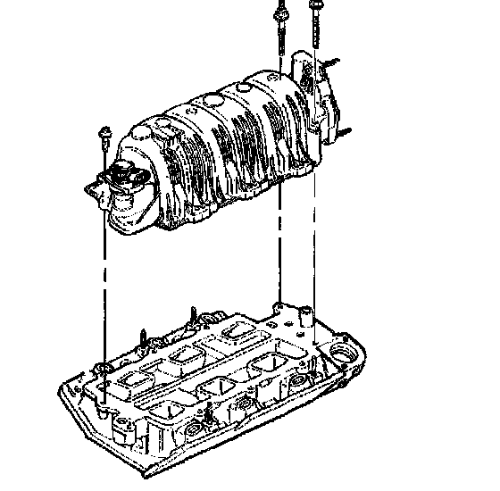 NOTICE: The two bolts which fasten the lower intake manifold to the cylinder. head are accessible only after the upper intake is removed. The bolts are located in the right front and left rear corners of the lower intake manifold. Remove the upper intake manifold to service the lower intake.